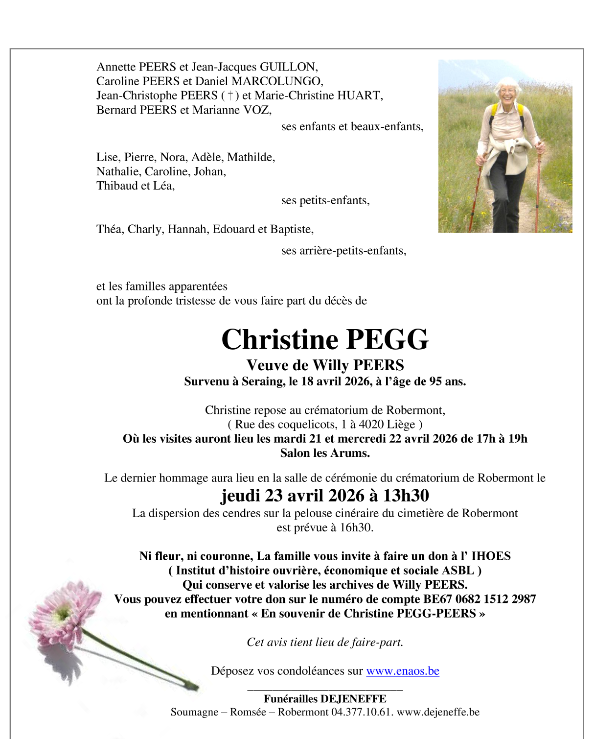 crématorium de Robermont le jeudi 23 avril à 14 heures 30