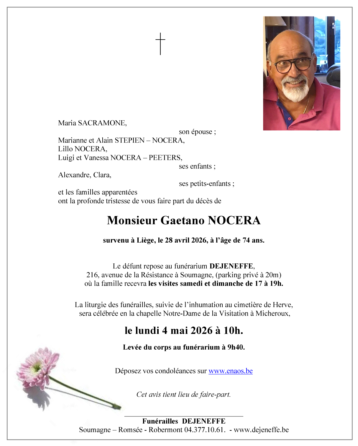 Avis de décès de Monsieur Gaetano NOCERA