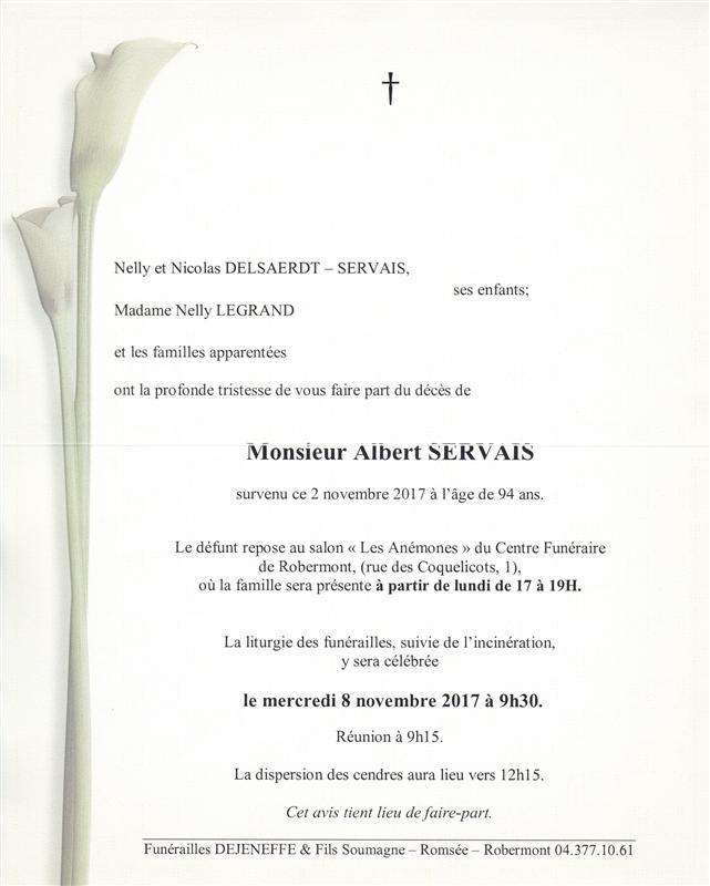 Décédé à Grivegnée (4030) le jeudi 2 novembre 2017 à l'âge de 94 ans