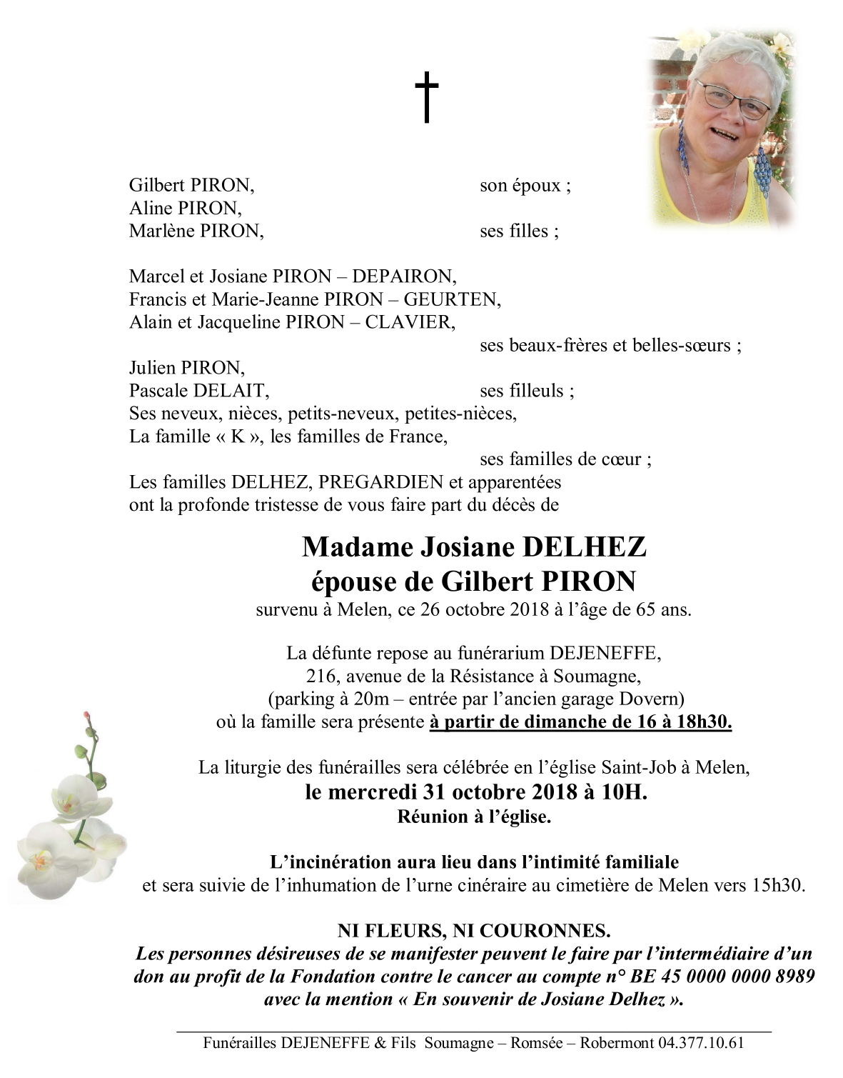 Décédée à Melen (4633) le vendredi 26 octobre 2018 à l'âge de 65 ans