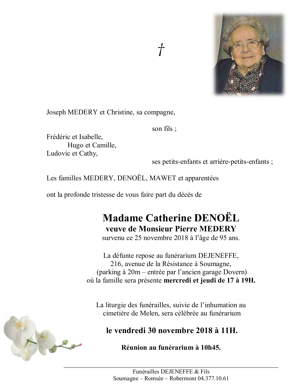 Décédée à Herve (4650) le dimanche 25 novembre 2018 à l'âge de 95 ans