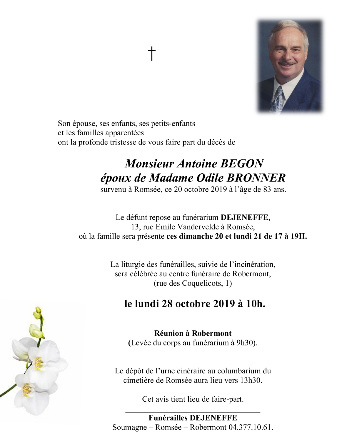 Décédé à Romsée (4624) le dimanche 20 octobre 2019 à l'âge de 83 ans