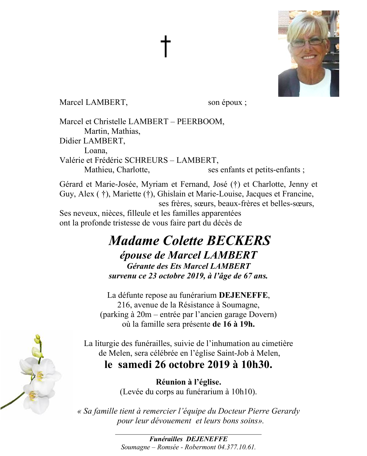 Décédée à Hermalle-sous-Argenteau (4681) le mercredi 23 octobre 2019 à l'âge de 67 ans