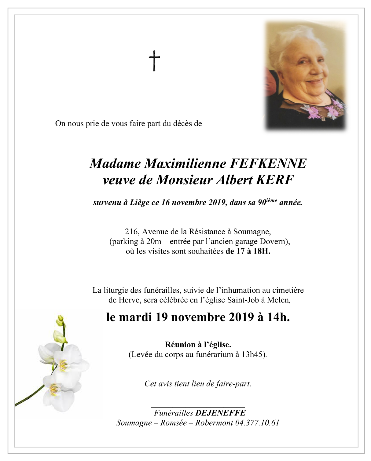 Décédée à Chaudfontaine (4050) le dimanche 17 novembre 2019