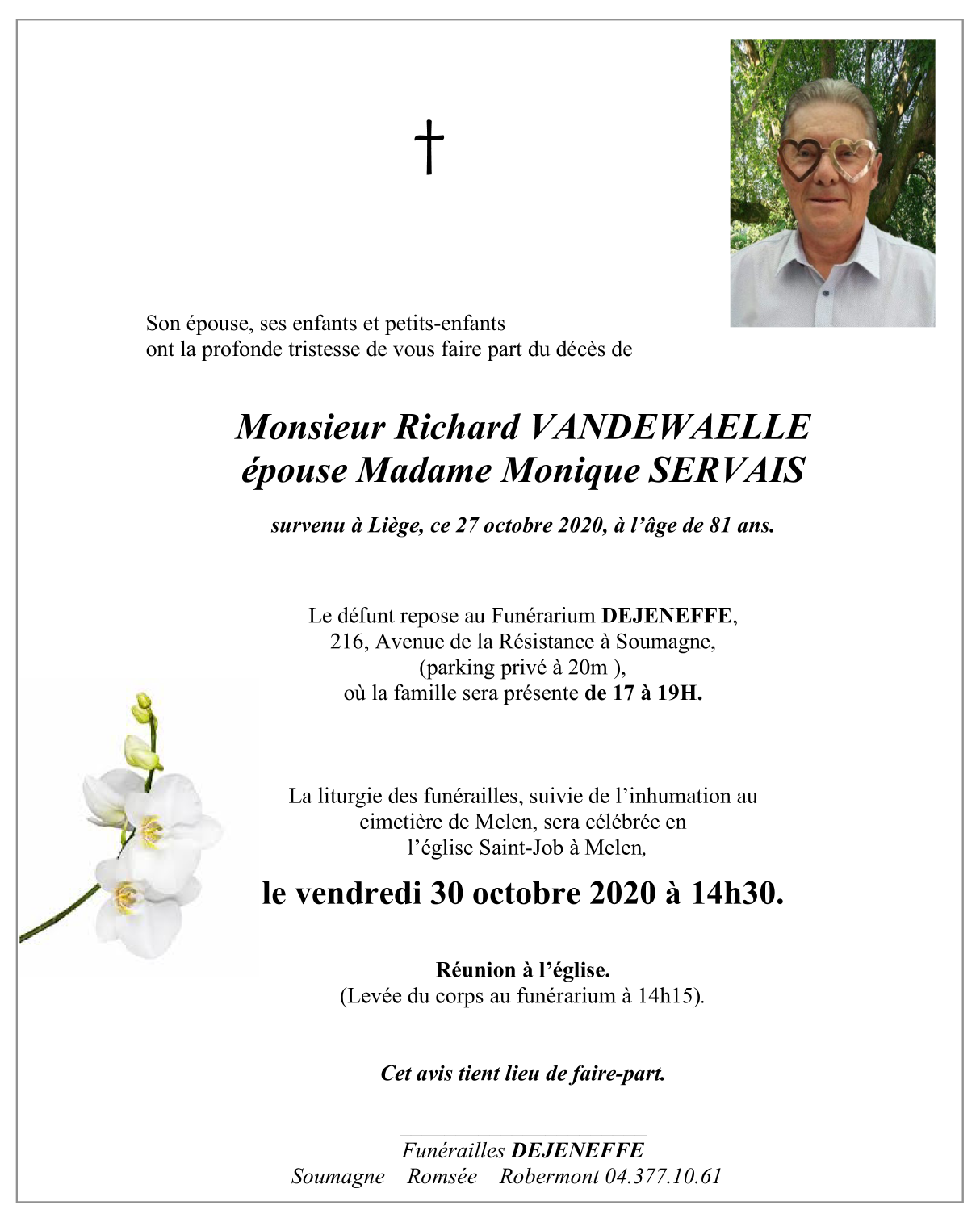 Décédé à Liège (4000) le mardi 27 octobre 2020 à l'âge de 81 ans