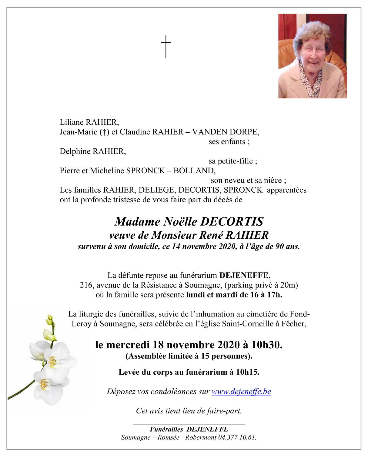 Décédée à Beyne-Heusay (4610) le samedi 14 novembre 2020 à l'âge de 90 ans