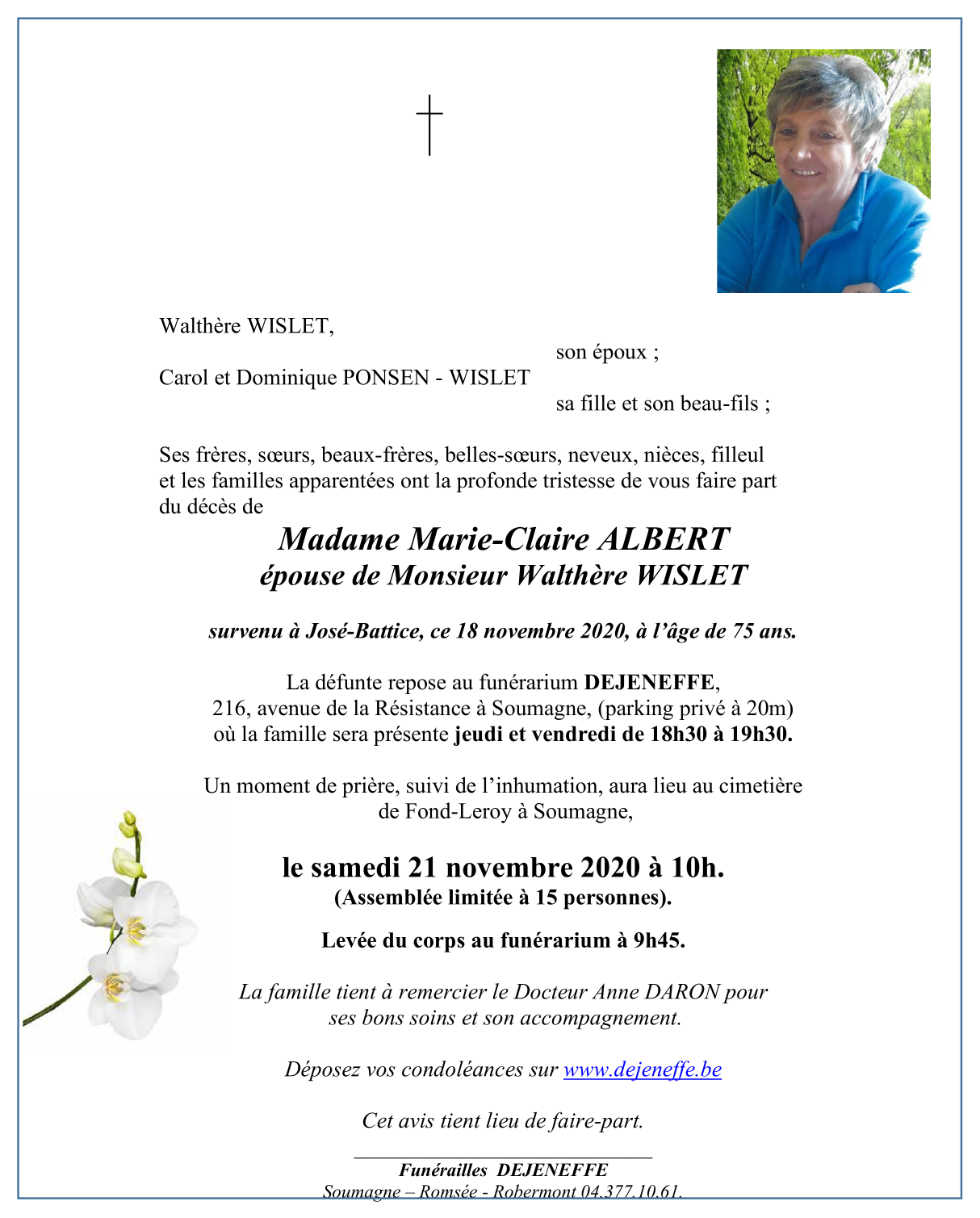 Décédée à José (4651) le mercredi 18 novembre 2020 à l'âge de 75 ans