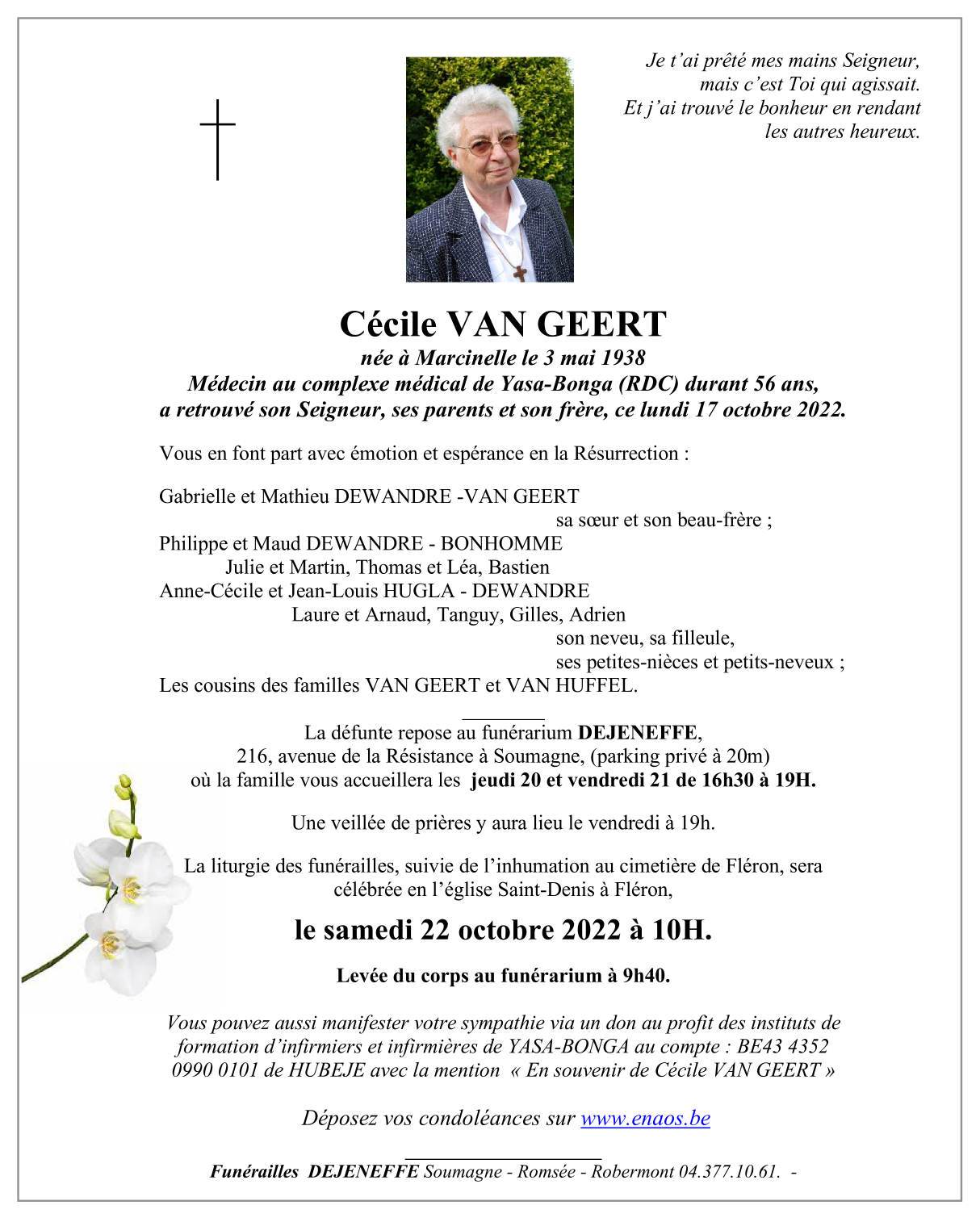 Décédée à Bois-de-Breux (4030) le lundi 17 octobre 2022 à l'âge de 84 ans