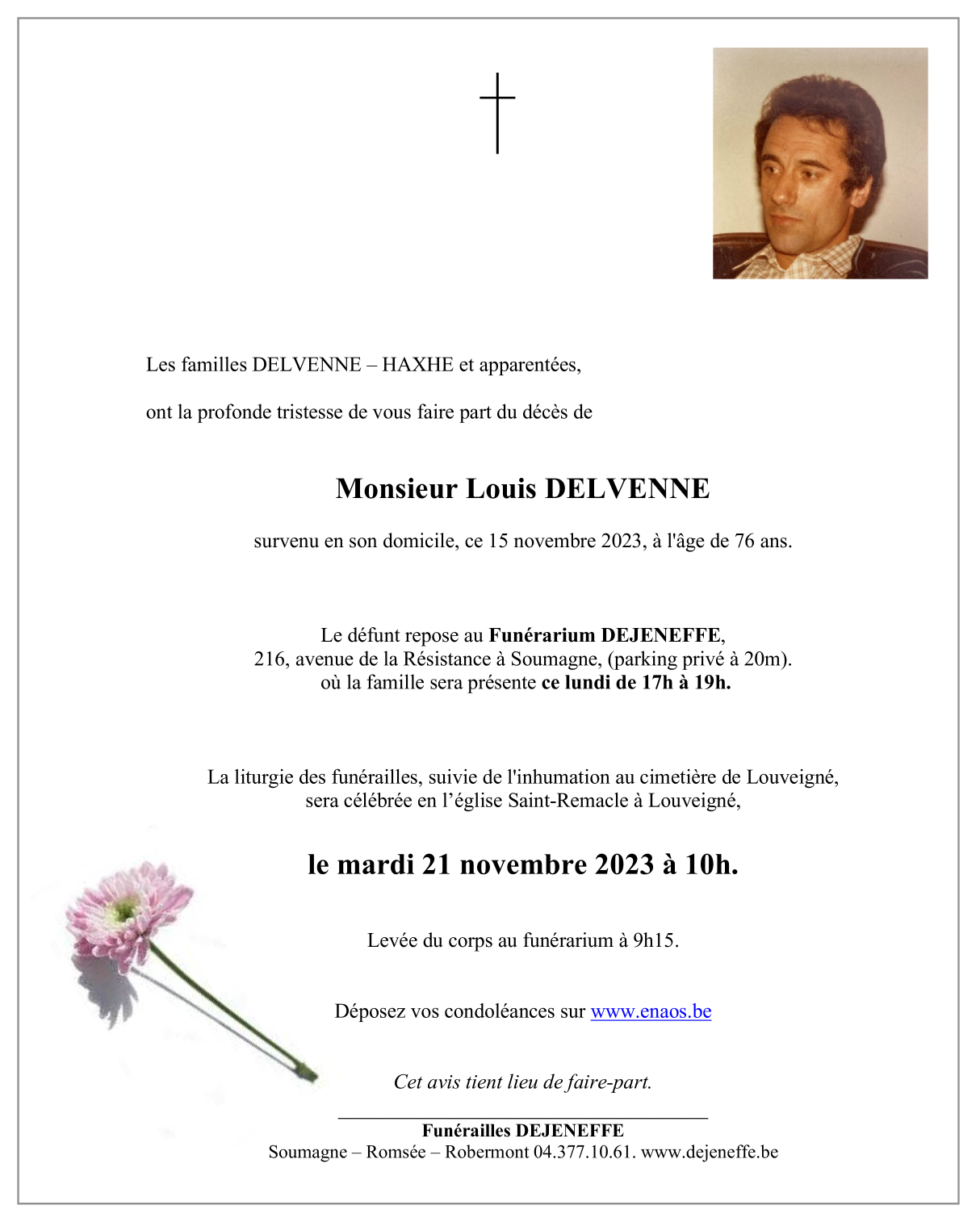 Décédé à Ayeneux (4630) le mercredi 15 novembre 2023 à l'âge de 76 ans