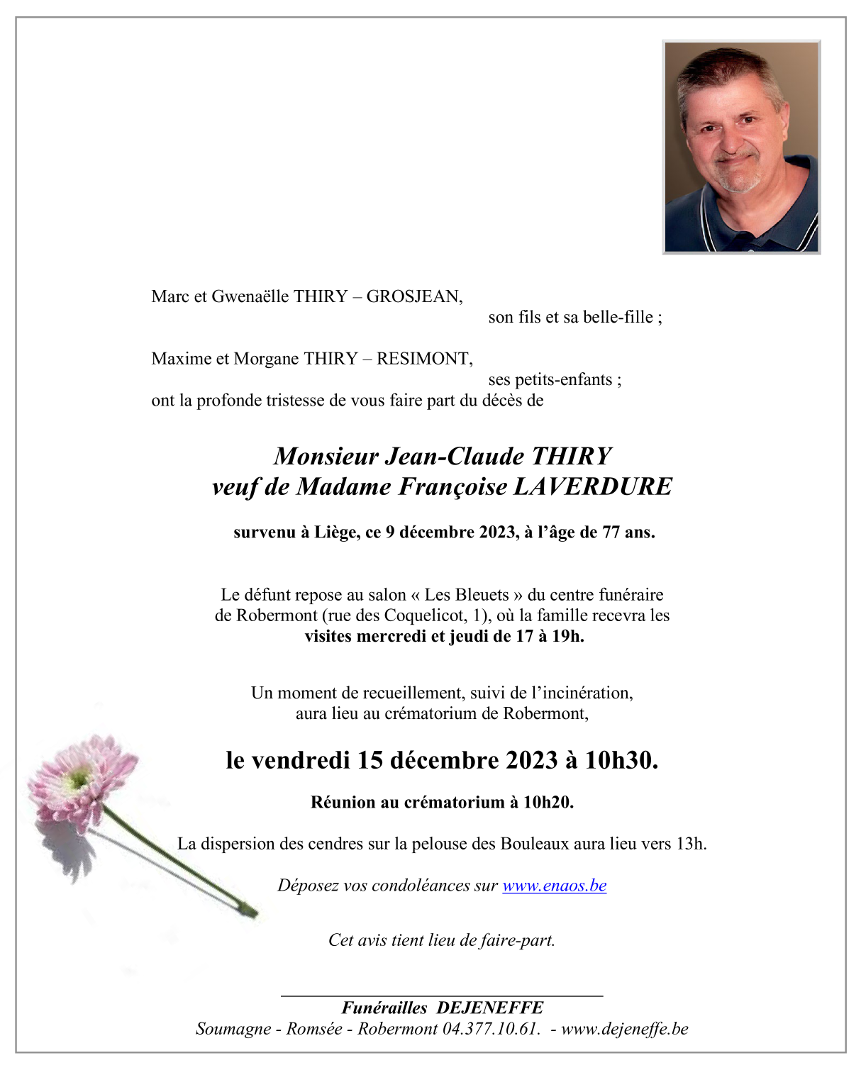 Décédé à Grivegnée (4030) le samedi 9 décembre 2023 à l'âge de 77 ans