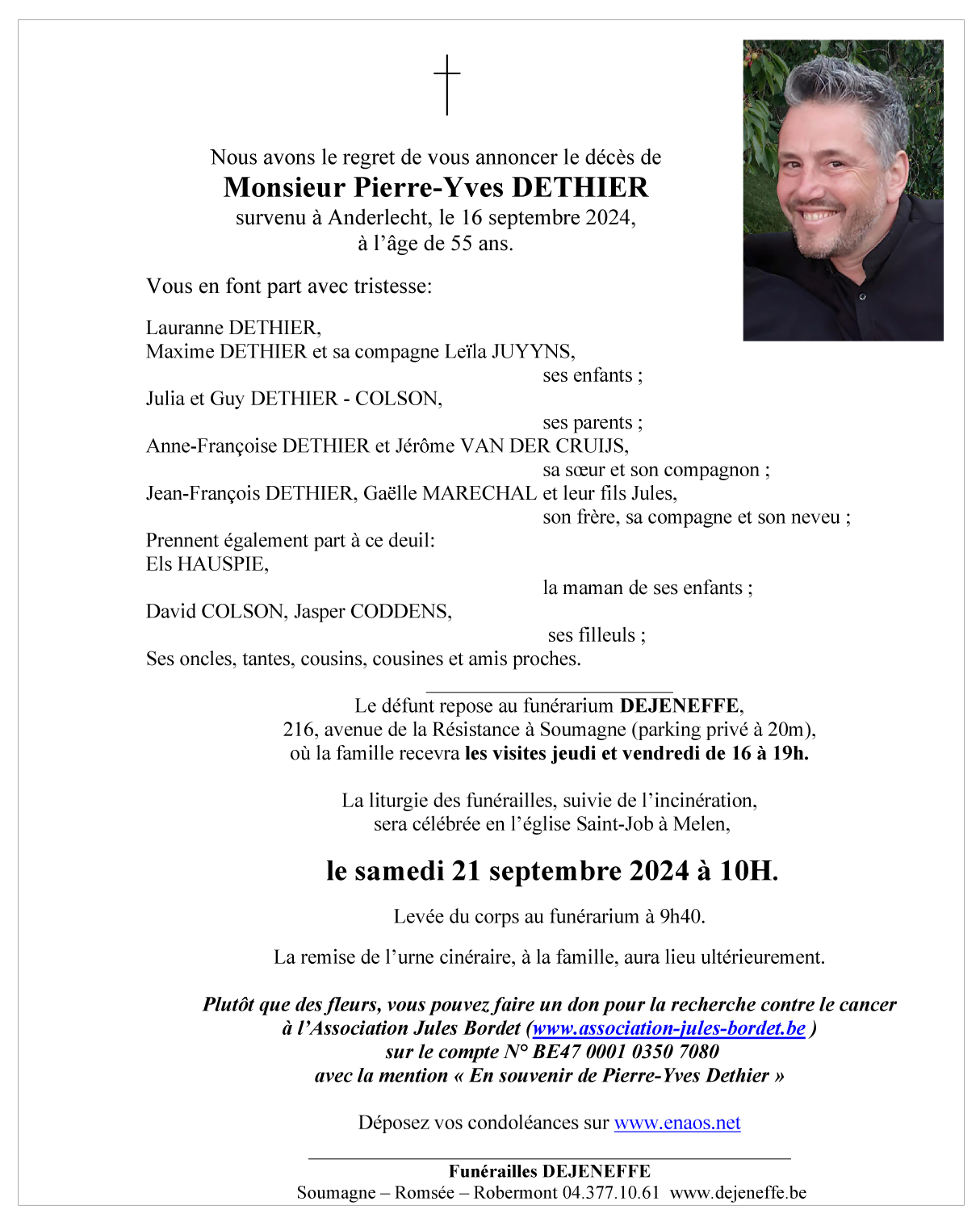 Décédé à Anderlecht (1070) le lundi 16 septembre 2024 à l'âge de 55 ans