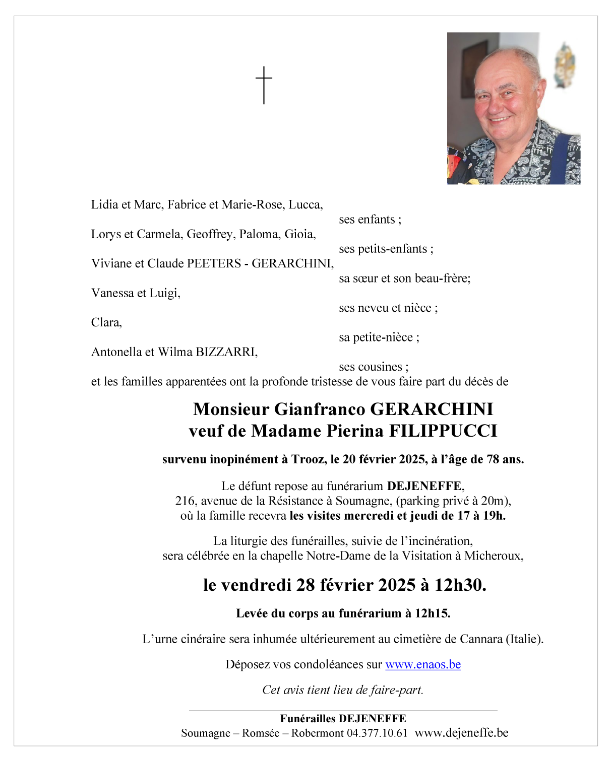 Décédé à Trooz (4870) le jeudi 20 février 2025 à l'âge de 78 ans