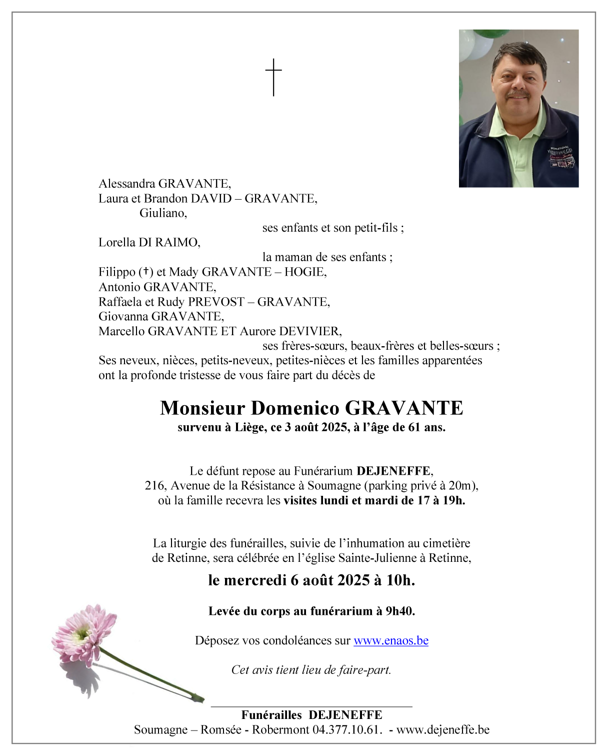 Décédé à Liège (4000) le dimanche 3 août 2025 à l'âge de 61 ans