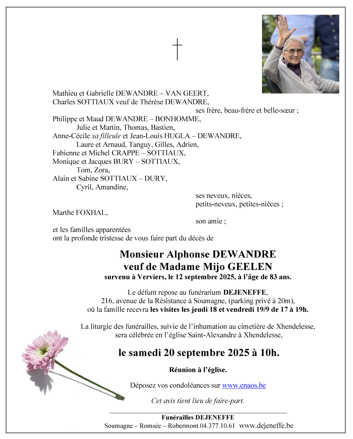 Décédé à Verviers (4800) le vendredi 12 septembre 2025 à l'âge de 83 ans