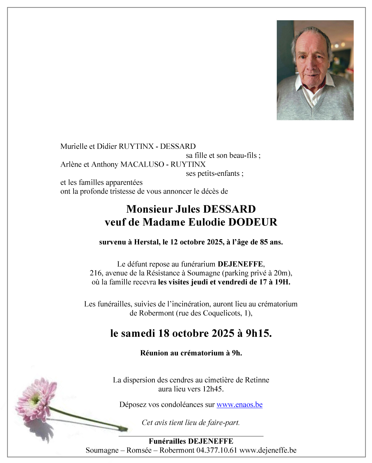 Décédé à Herstal (4040) le dimanche 12 octobre 2025 à l'âge de 85 ans