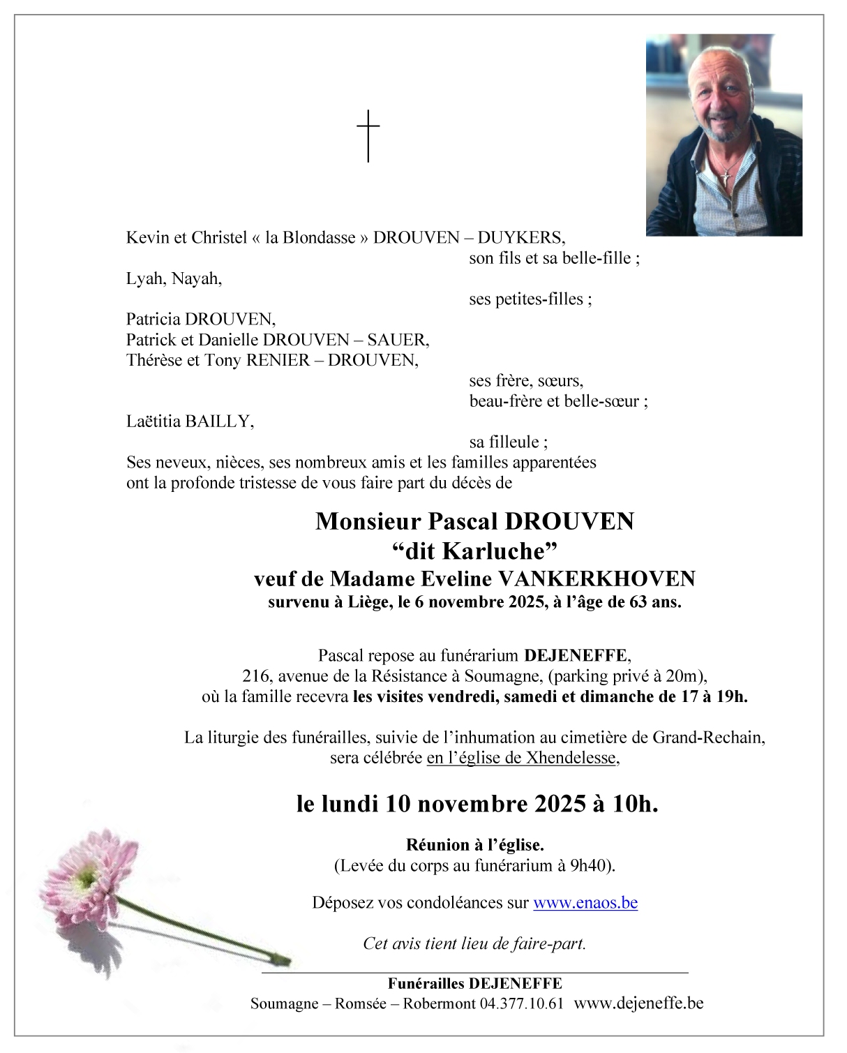 Décédé à Liège (4000) le jeudi 6 novembre 2025 à l'âge de 63 ans