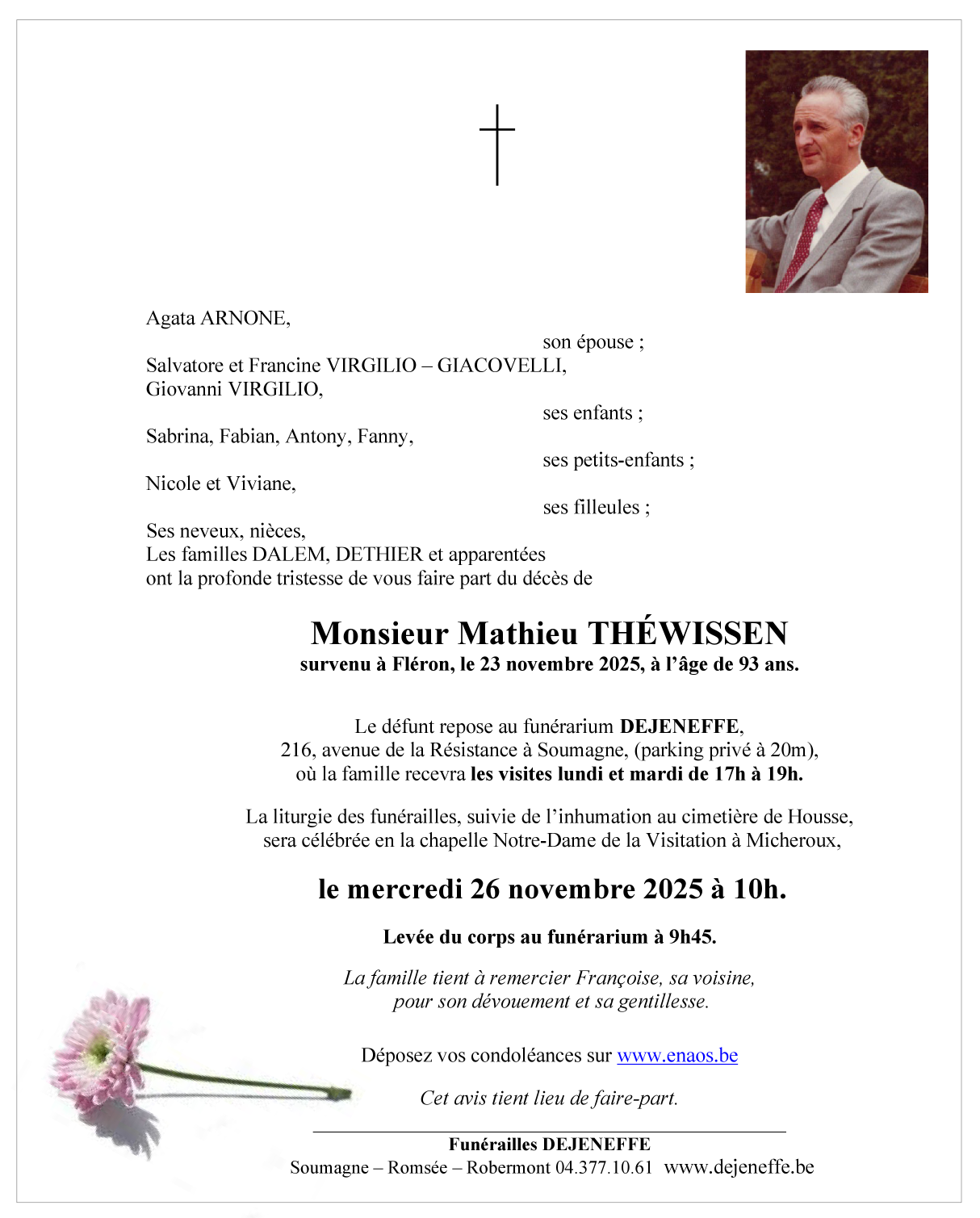 Décédé à Fléron (4620) le dimanche 23 novembre 2025 à l'âge de 93 ans