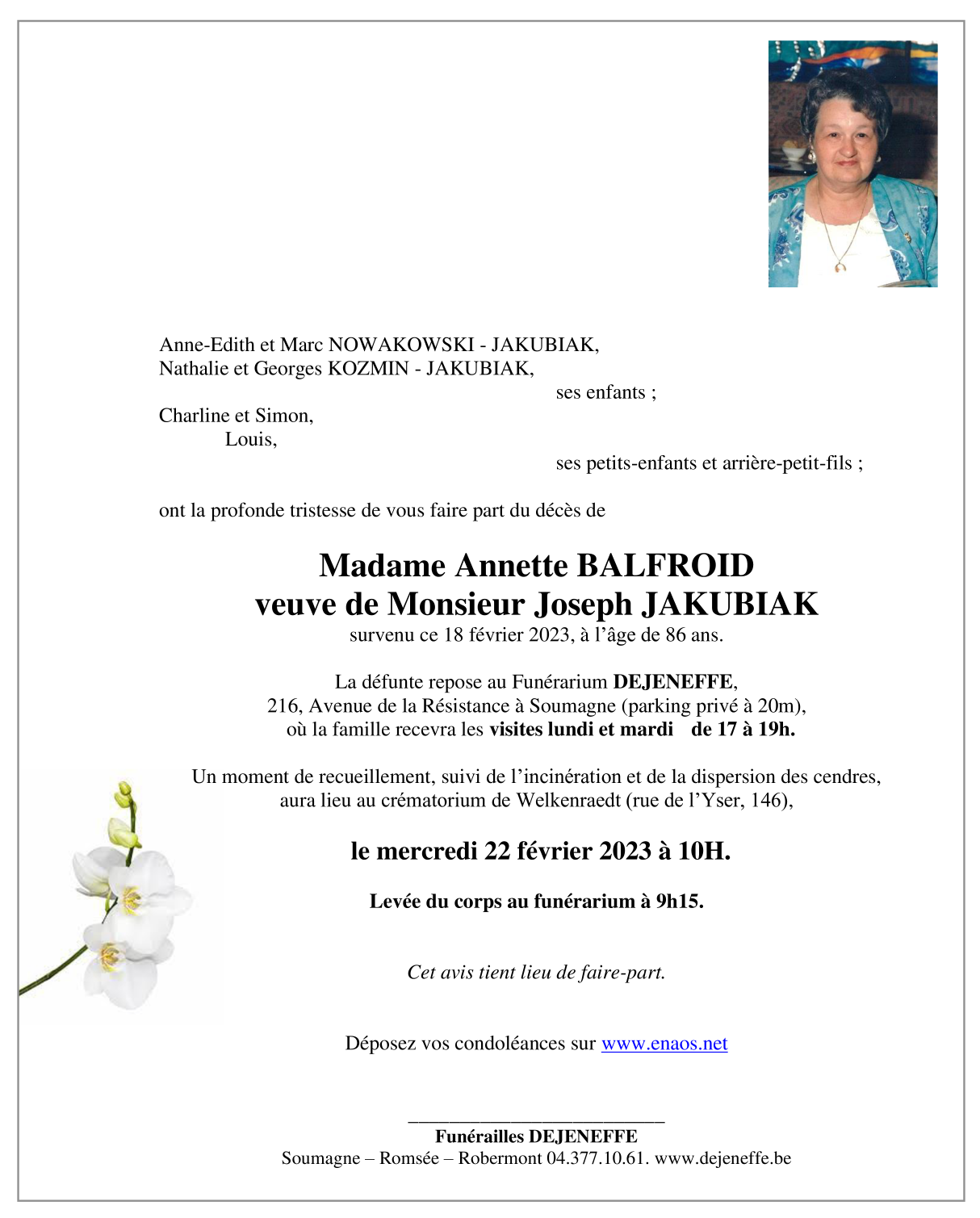 Madame Annette JAKUBIAK - BALFROID