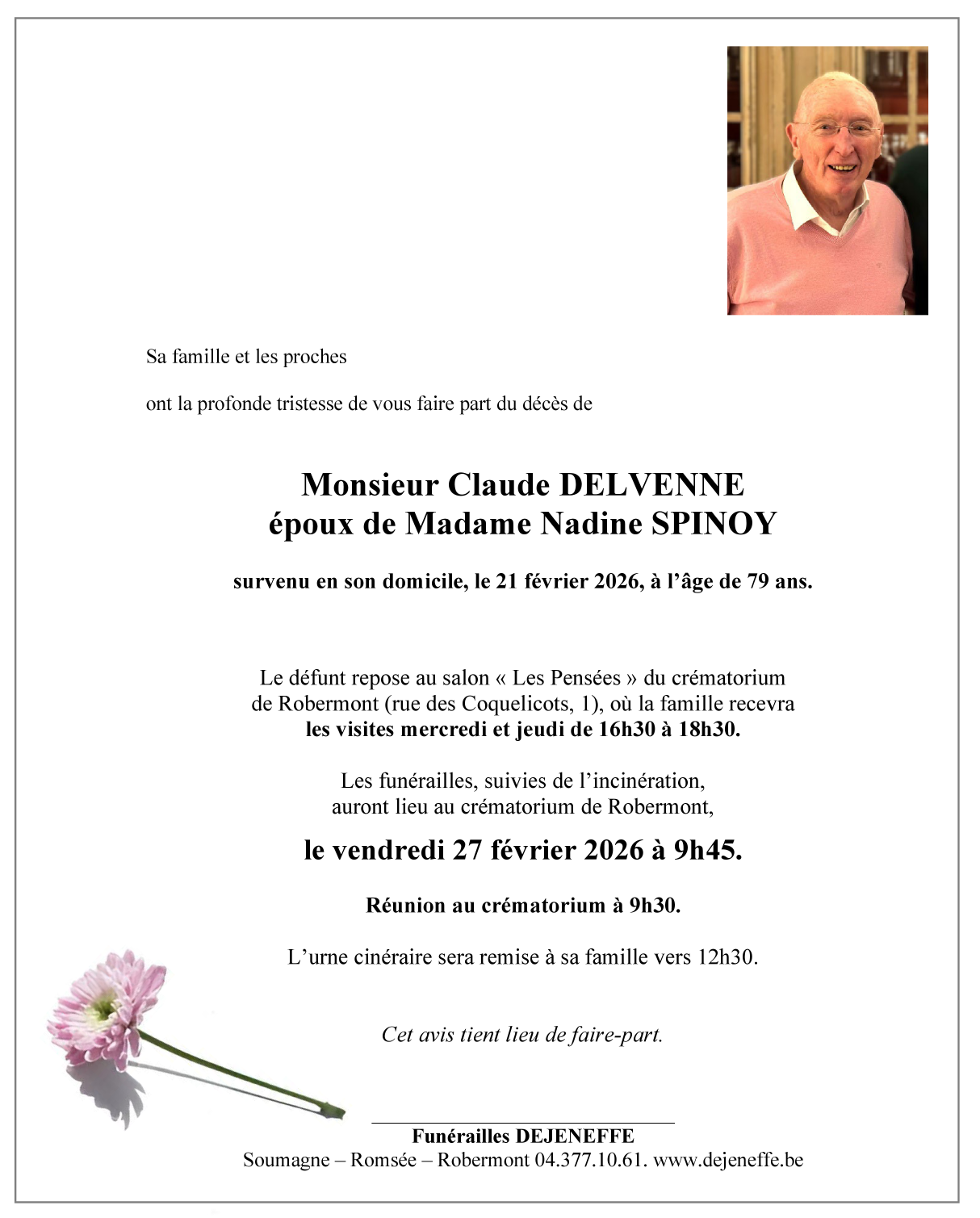 Décédé à Boncelles (4100) le samedi 21 février 2026 à l'âge de 79 ans