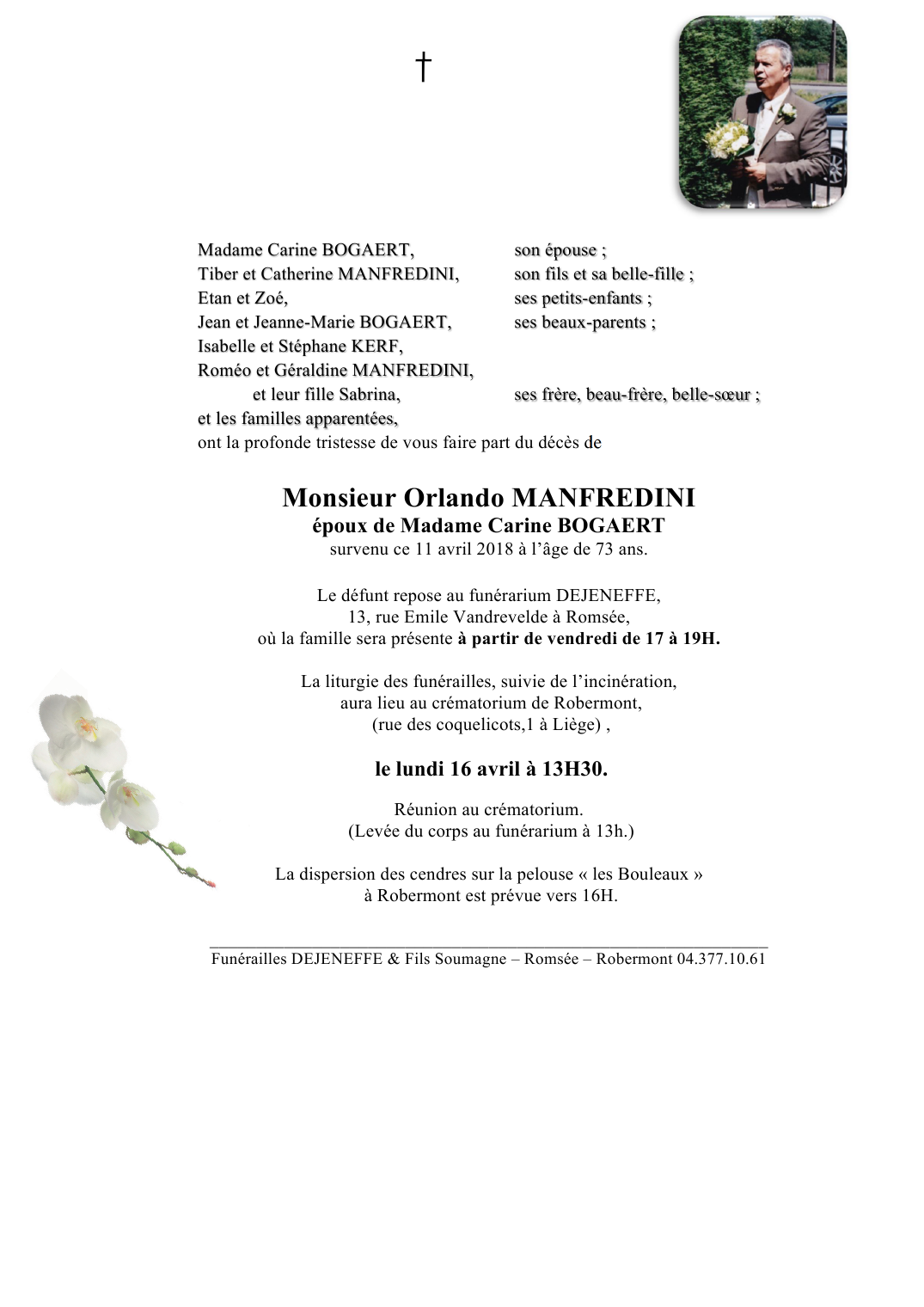 Décédé à Vaux-sous-Chèvremont (4051) le mercredi 11 avril 2018 à l'âge de 73 ans