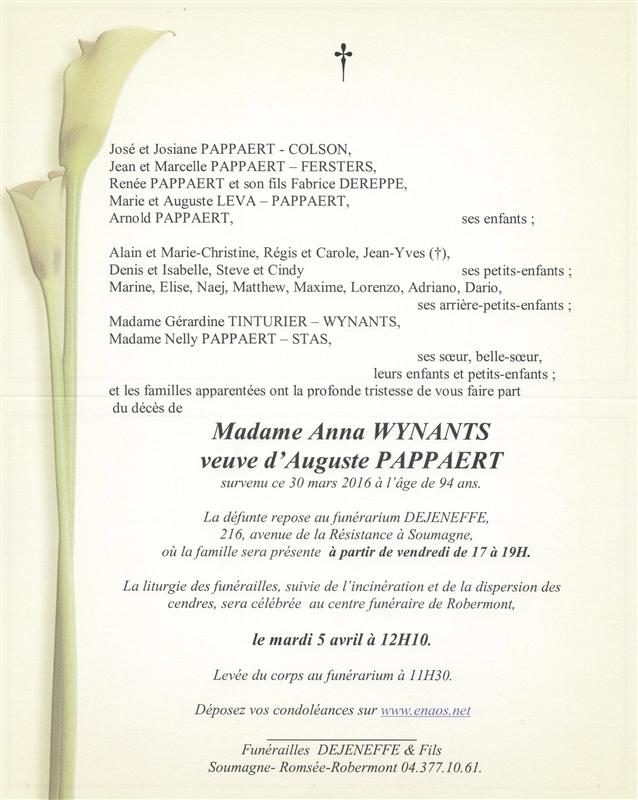 Madame Anna PAPPAERT née WYNANTS