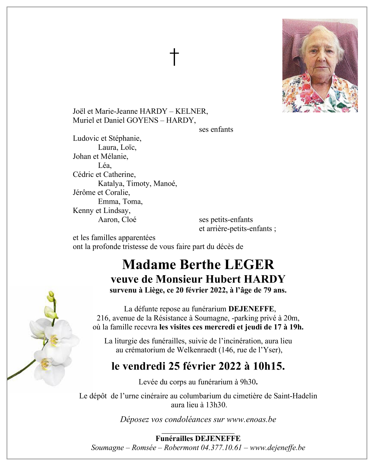 Décédée à Liège (4000) le dimanche 20 février 2022 à l'âge de 79 ans