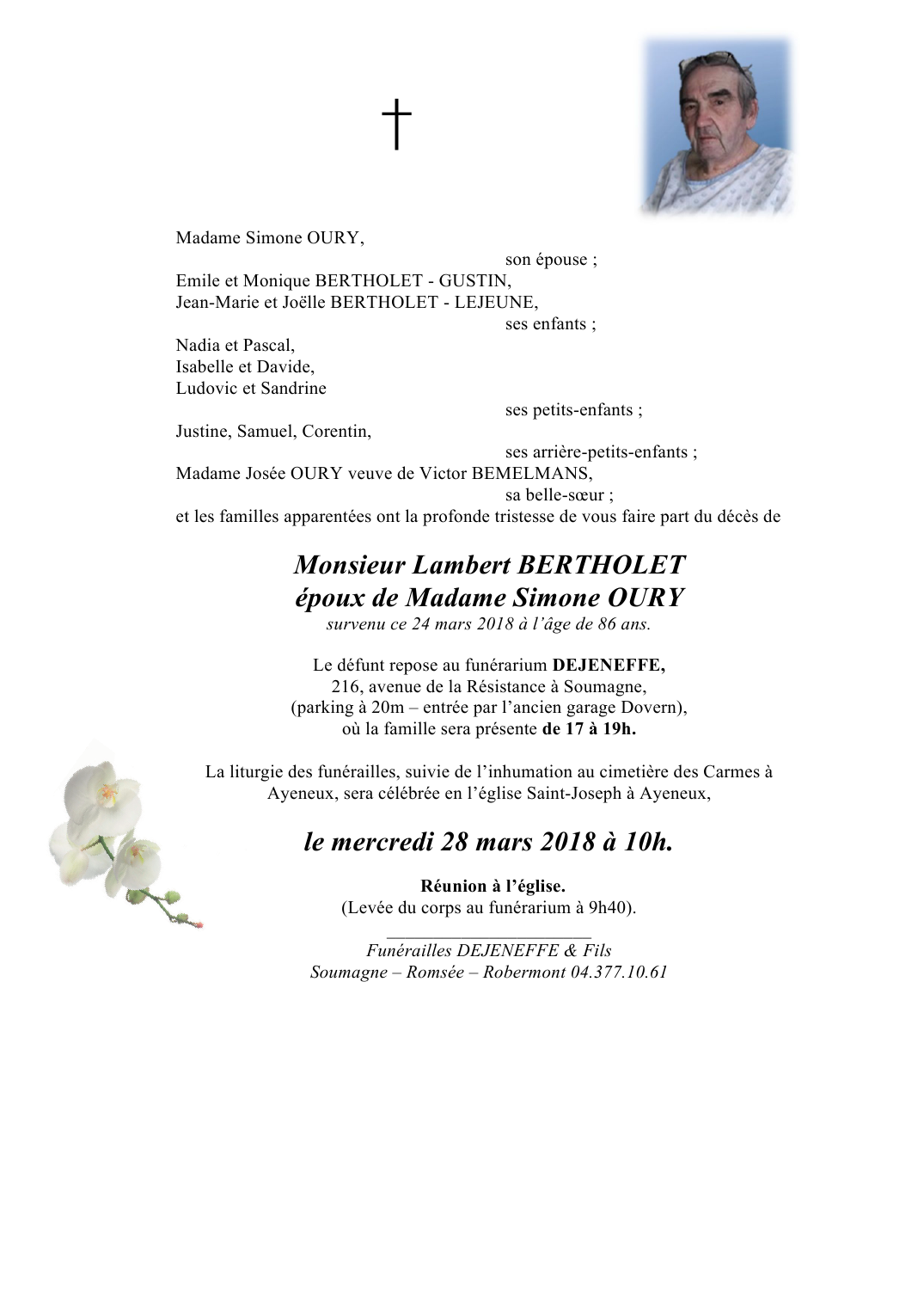 Décédé à Ayeneux (4630) le samedi 24 mars 2018 à l'âge de 86 ans