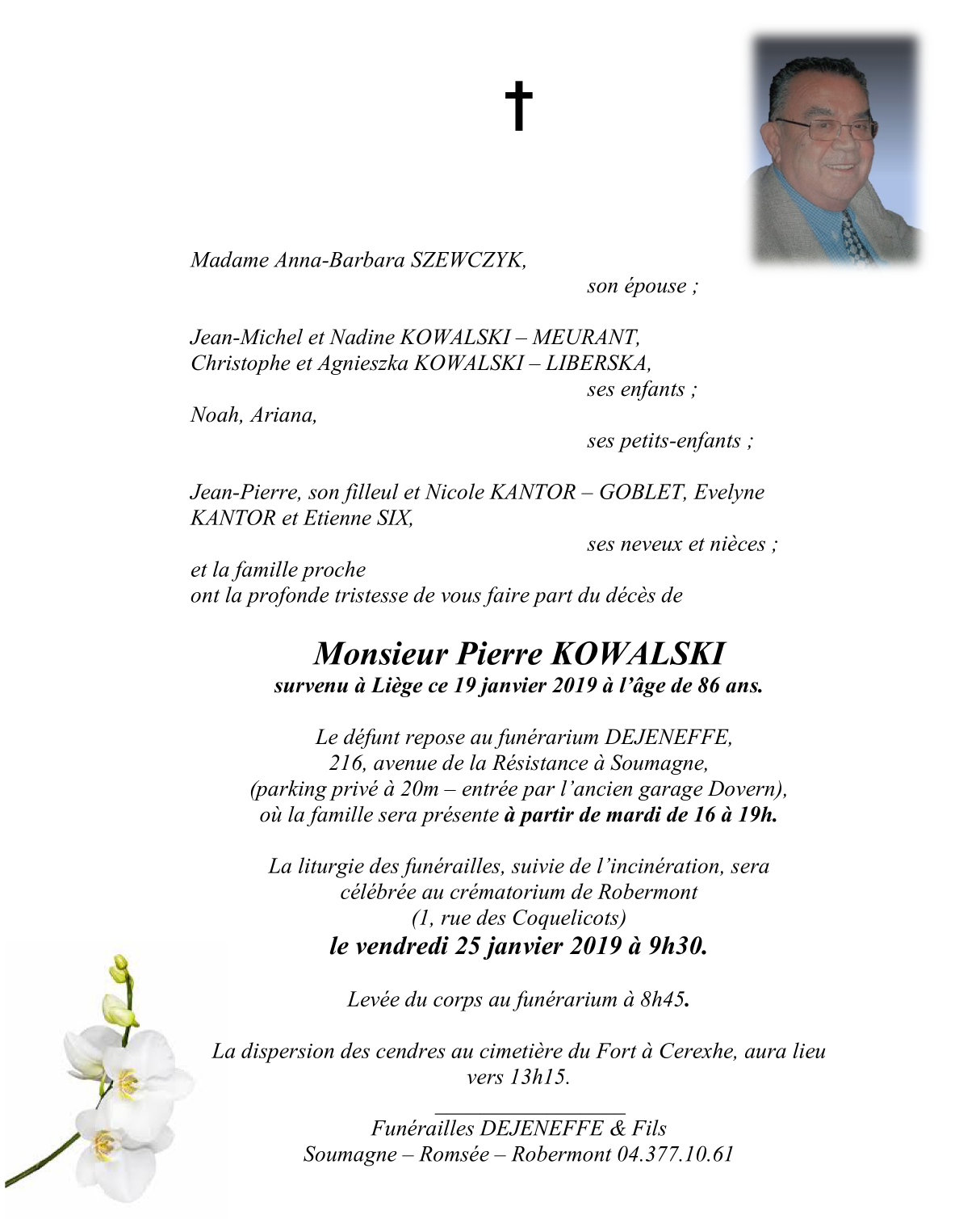 Décédé à Liège (4000) le samedi 19 janvier 2019 à l'âge de 86 ans