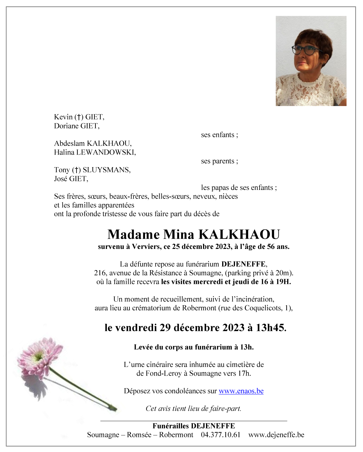 Décédé à Verviers (4800) le lundi 25 décembre 2023 à l'âge de 56 ans