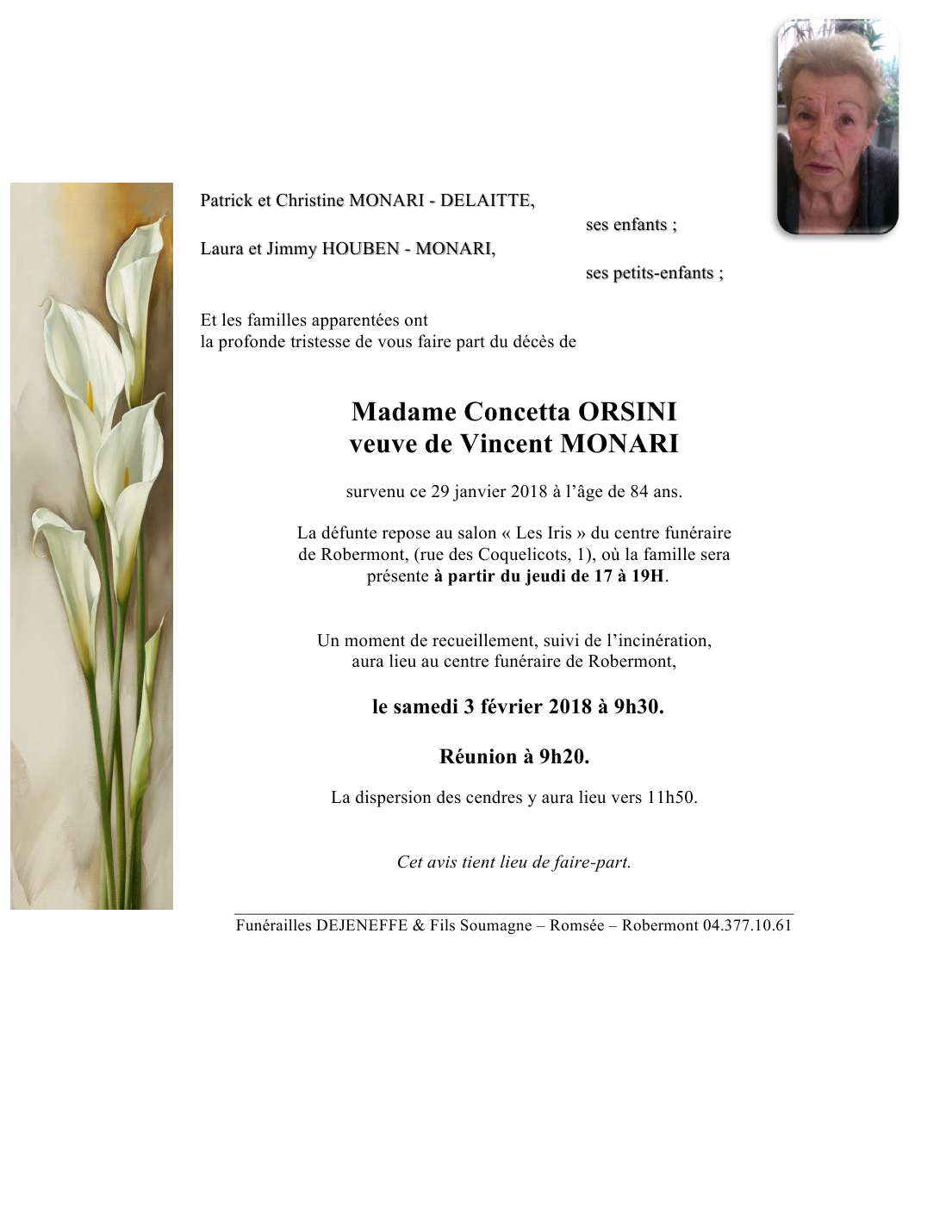 Veuve de Monsieur Vincent MONARI