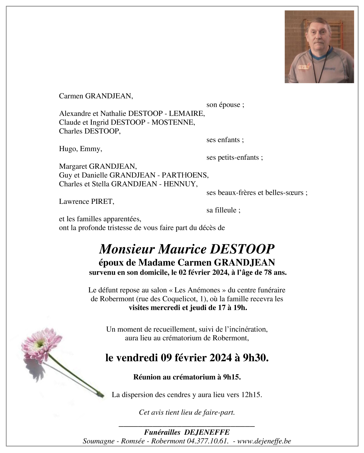 Décédé à Angleur (4031) le vendredi 2 février 2024 à l'âge de 78 ans