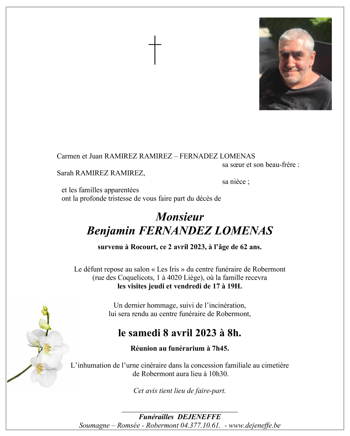 Décédé à Rocourt (4000) le dimanche 2 avril 2023 à l'âge de 62 ans