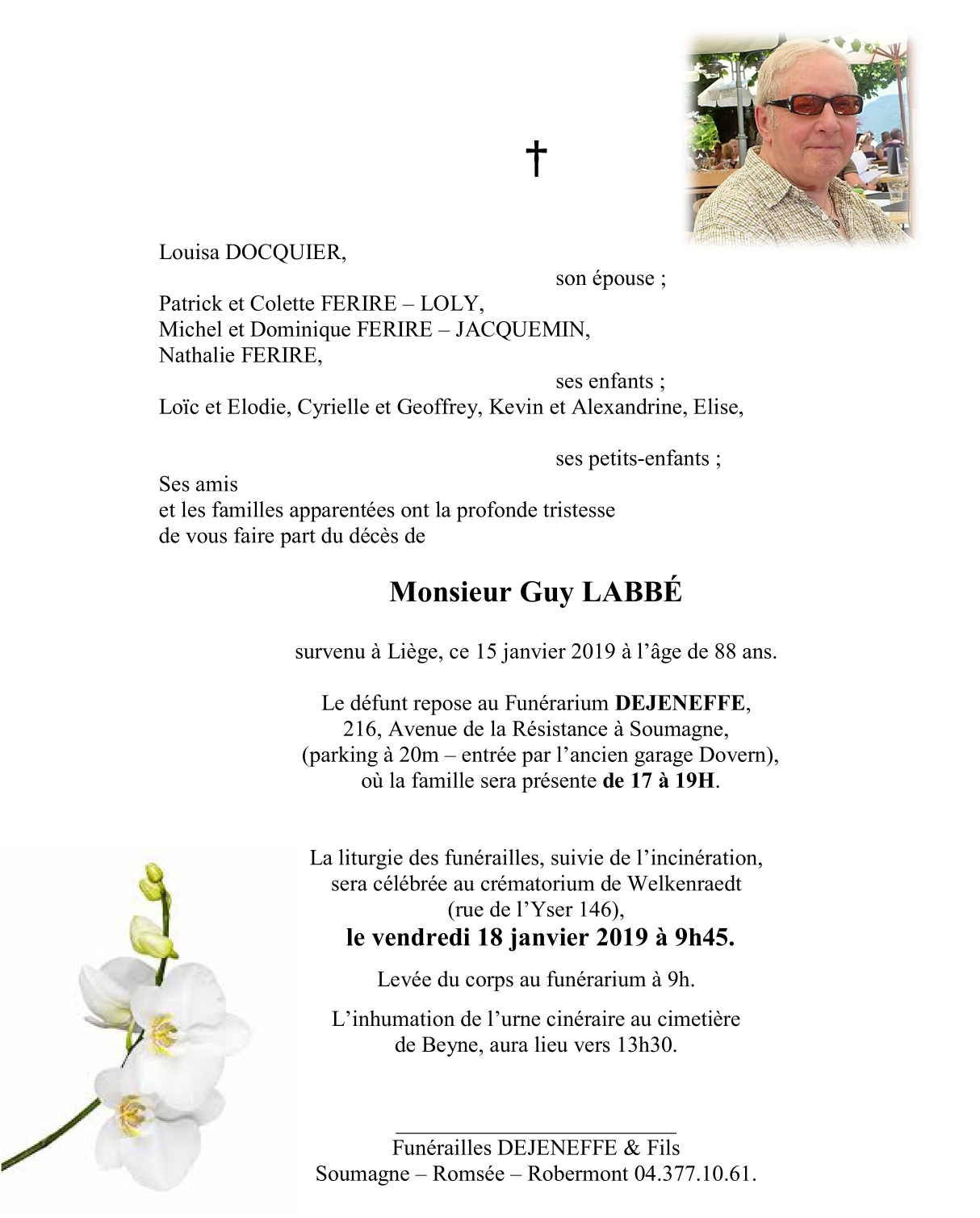 Décédé à Liège (4000) le mardi 15 janvier 2019 à l'âge de 88 ans
