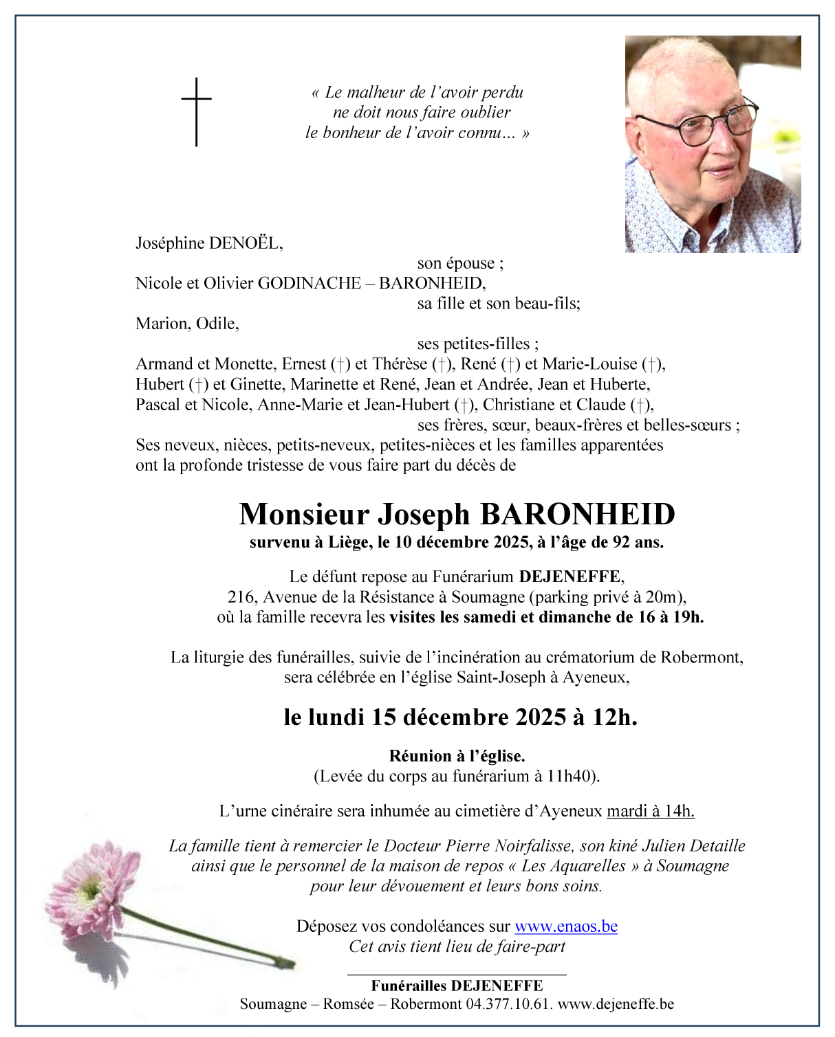 Décédé à Liège (4000) le mercredi 10 décembre 2025 à l'âge de 92 ans