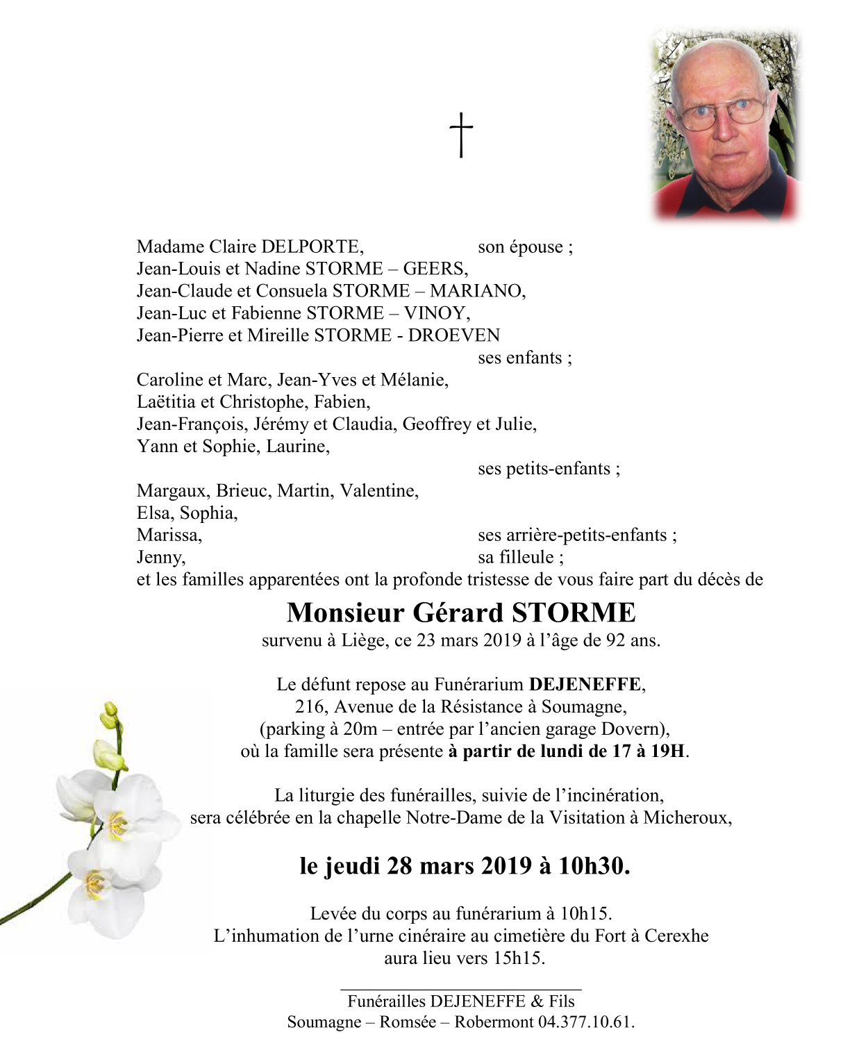 Décédé à Liège (4000) le samedi 23 mars 2019 à l'âge de 92 ans