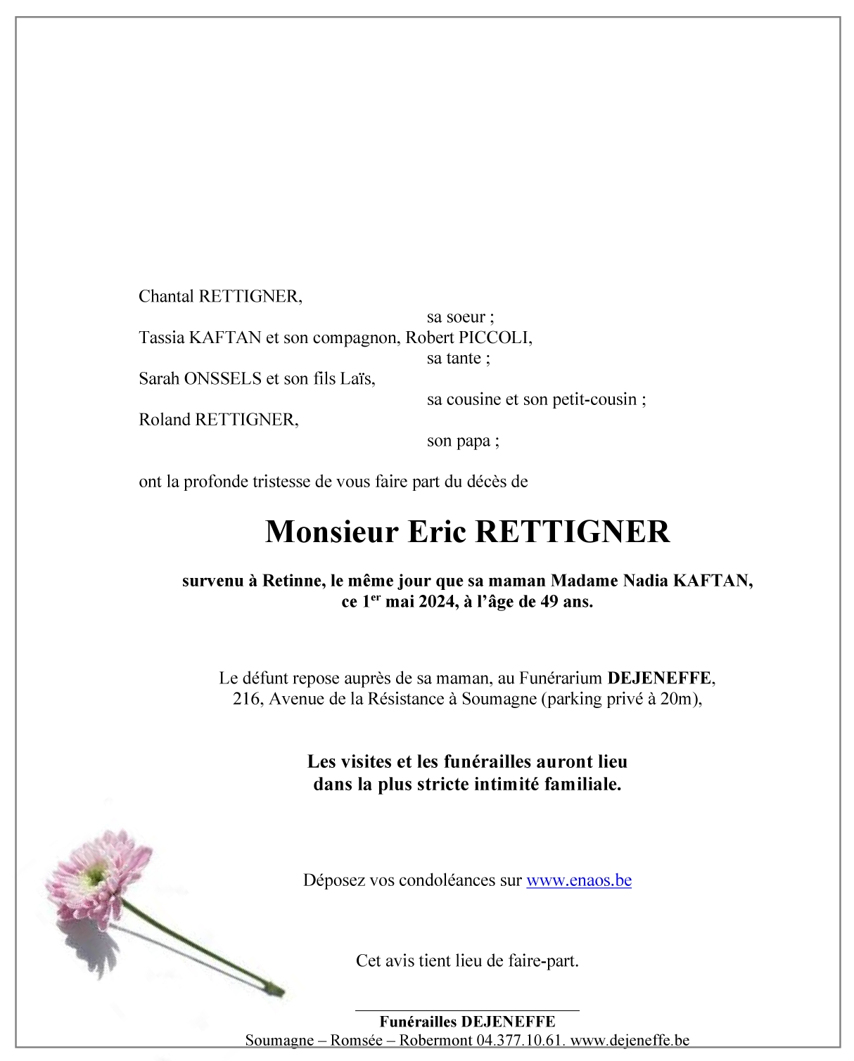 Décédé à Retinne (4621) le mercredi 1 mai 2024 à l'âge de 49 ans