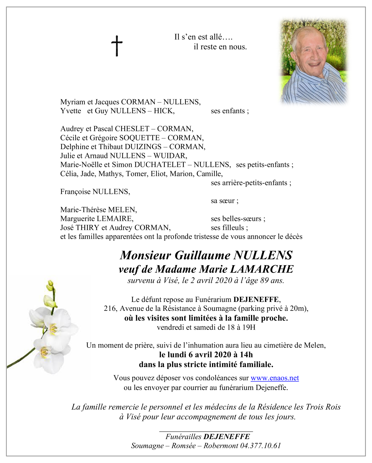 Décédé à Visé (4600) le jeudi 2 avril 2020 à l'âge de 89 ans
