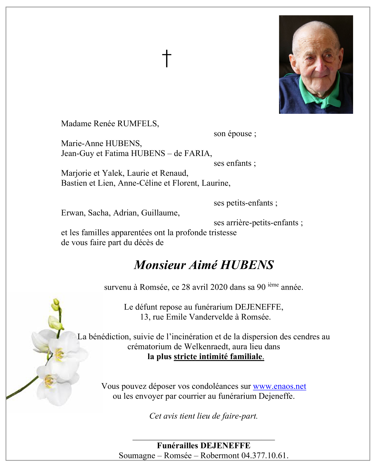 Décédé à Romsée (4624) le mardi 28 avril 2020 à l'âge de 89 ans