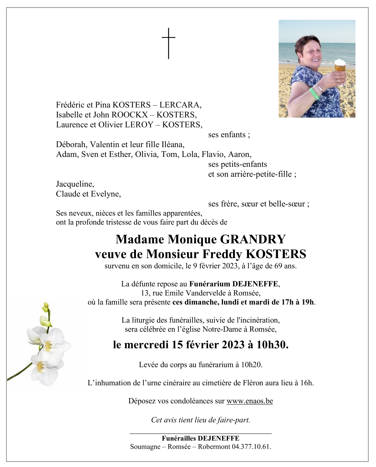 Décédée à Romsée (4624) le jeudi 9 février 2023 à l'âge de 69 ans