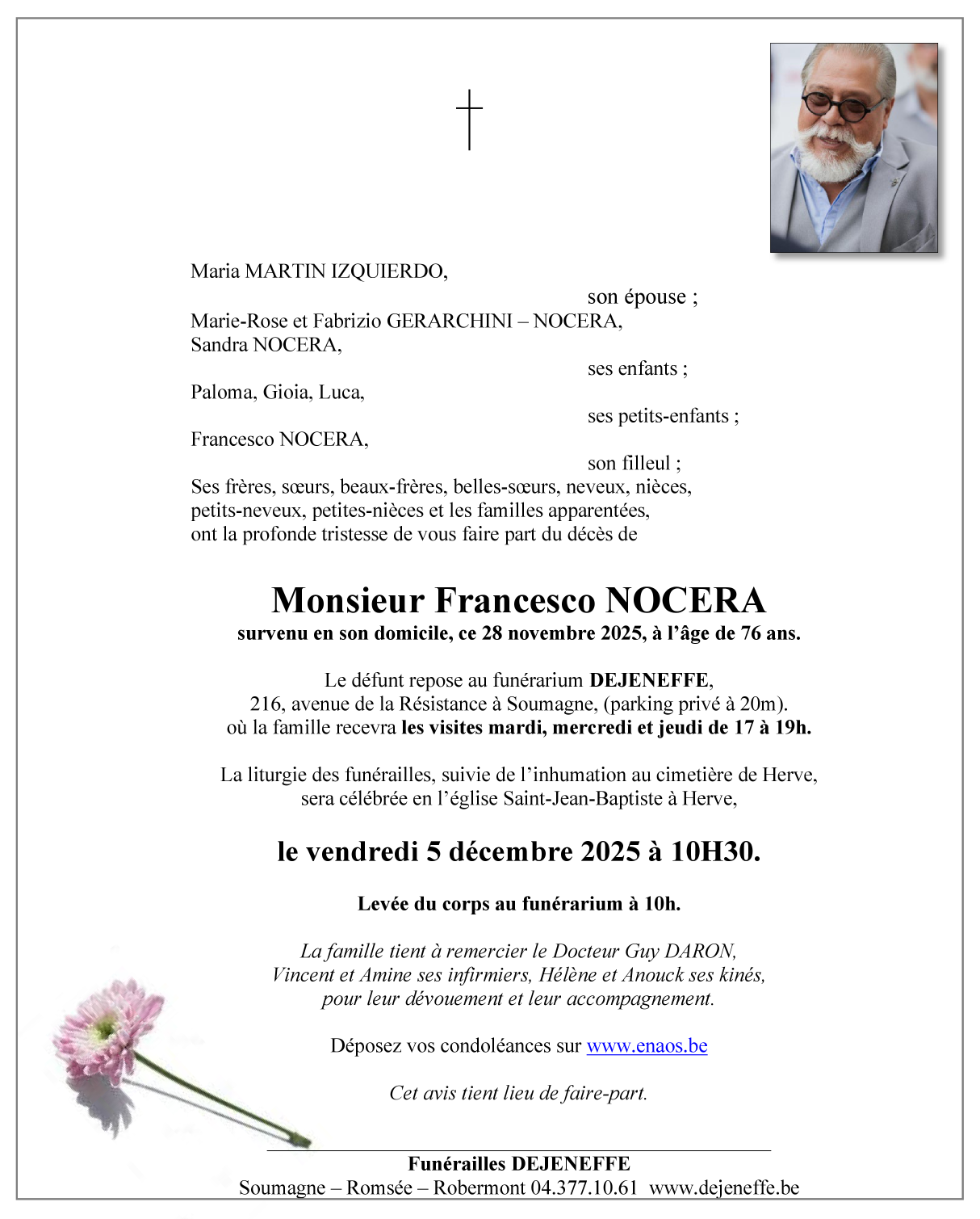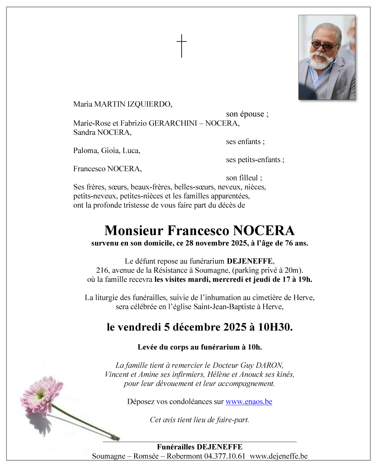 Décédé à Soumagne (4630) le vendredi 28 novembre 2025 à l'âge de 76 ans