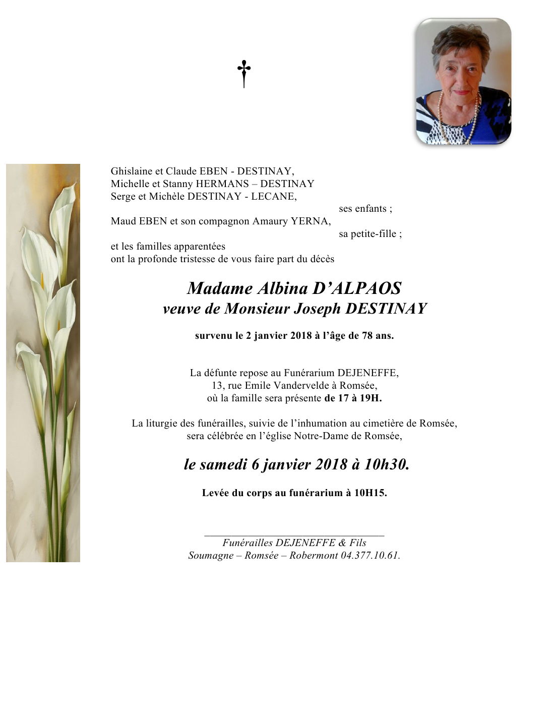 Madame Albina DESTINAY née D'ALPAOS
