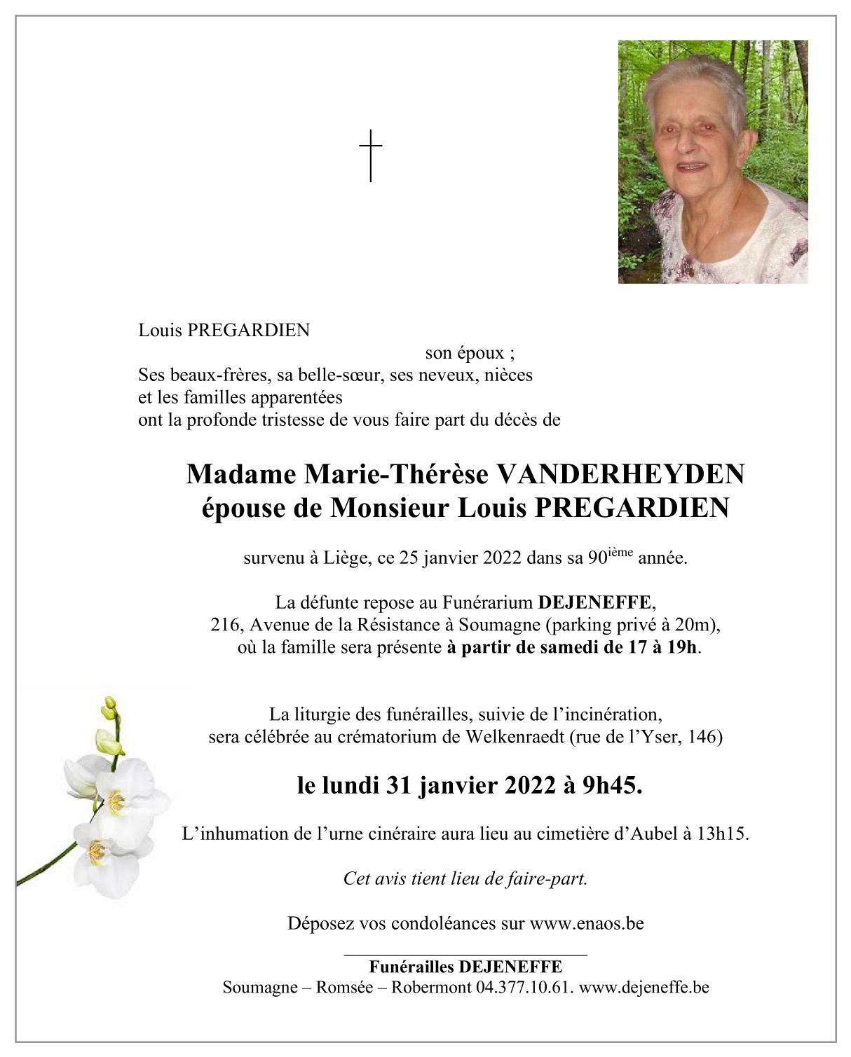 Madame Marie-Thérèse PREGARDIEN - VANDERHEYDEN