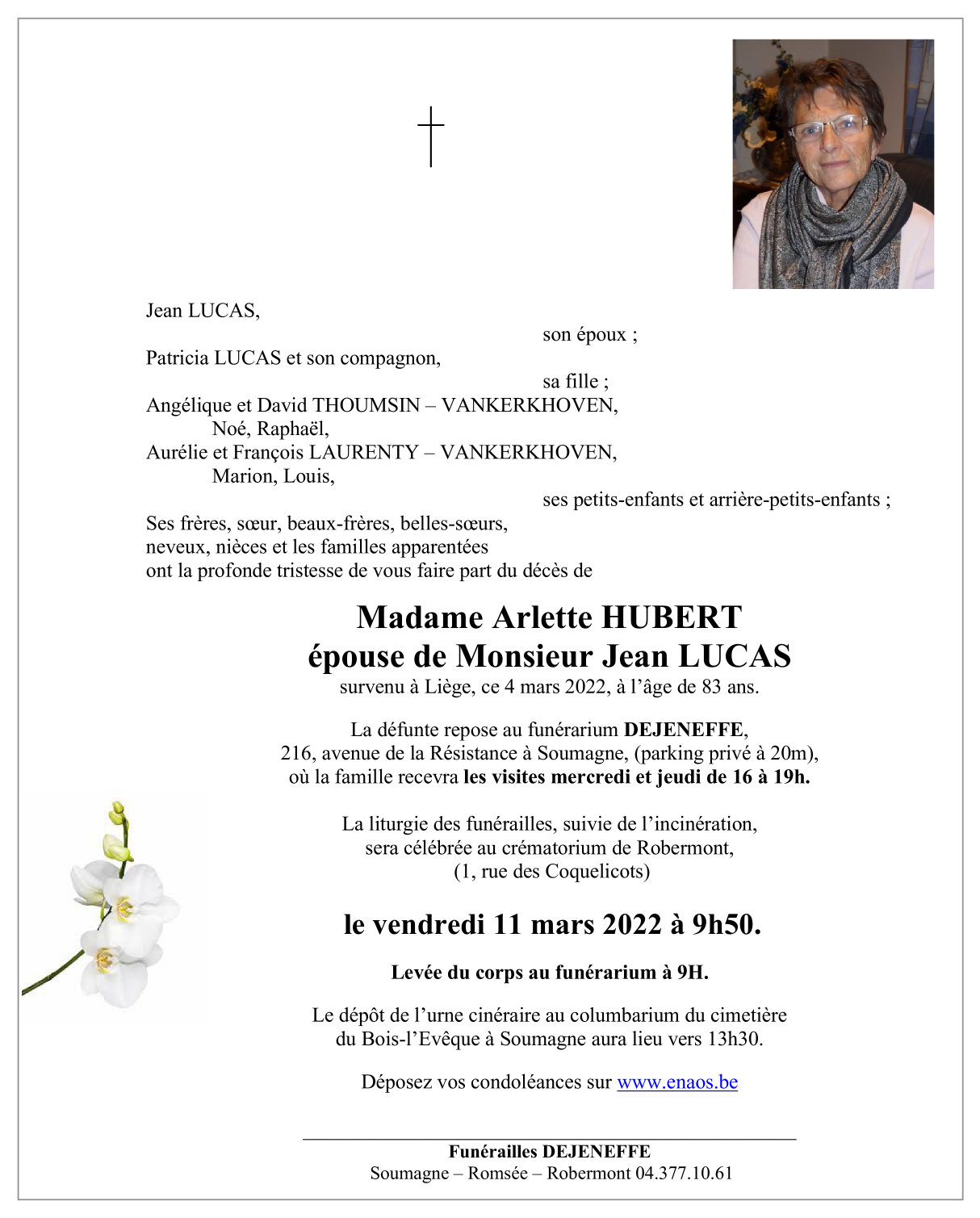 Décédée à Liège (4000) le vendredi 4 mars 2022 à l'âge de 83 ans
