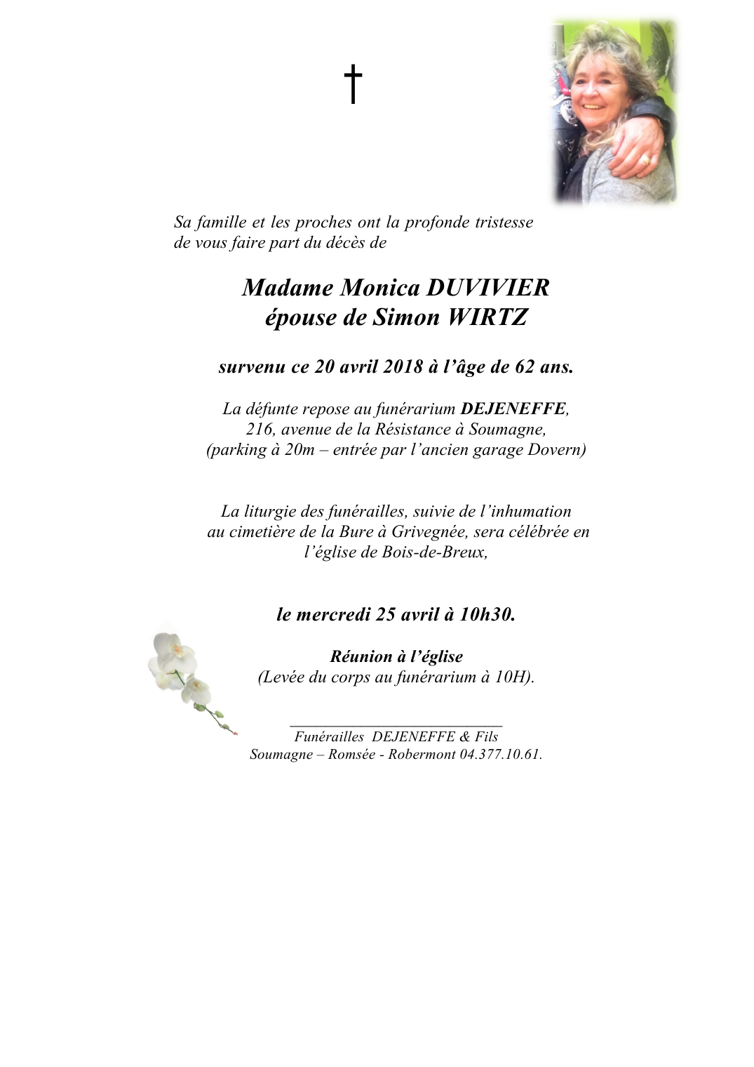 Décédée à Liège (4000) le vendredi 20 avril 2018 à l'âge de 62 ans