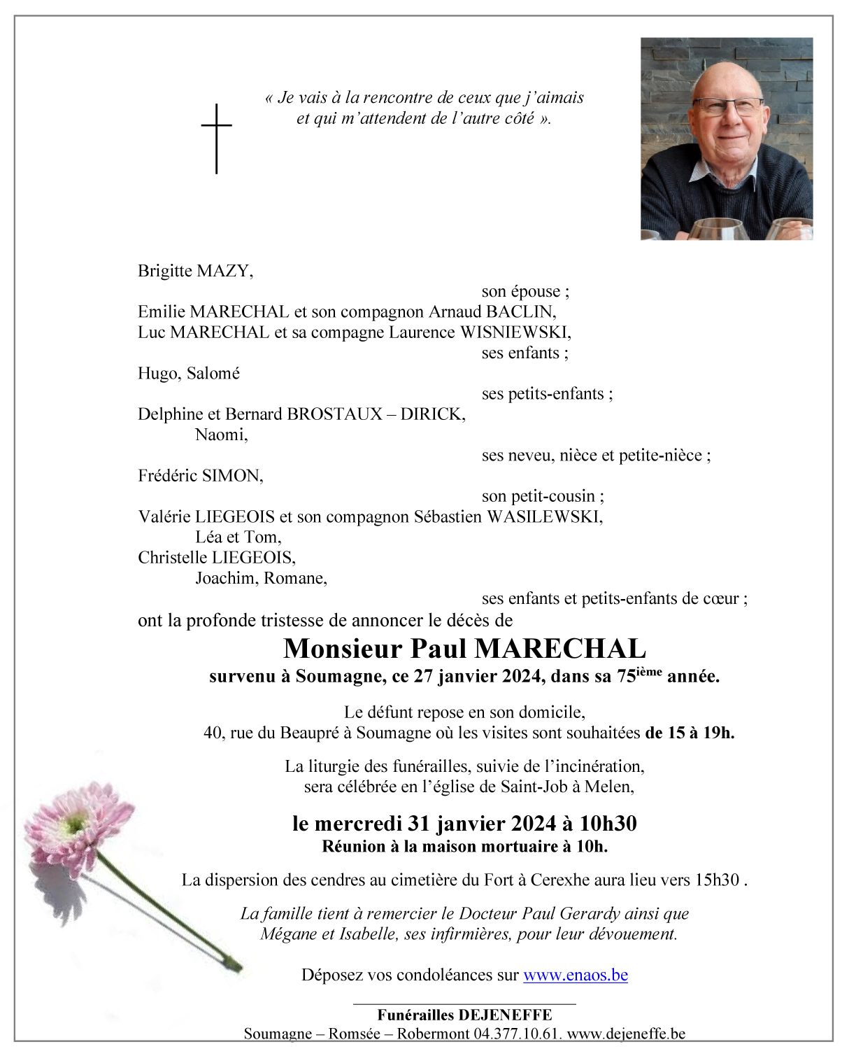 Décédé à Melen (4633) le samedi 27 janvier 2024 à l'âge de 74 ans