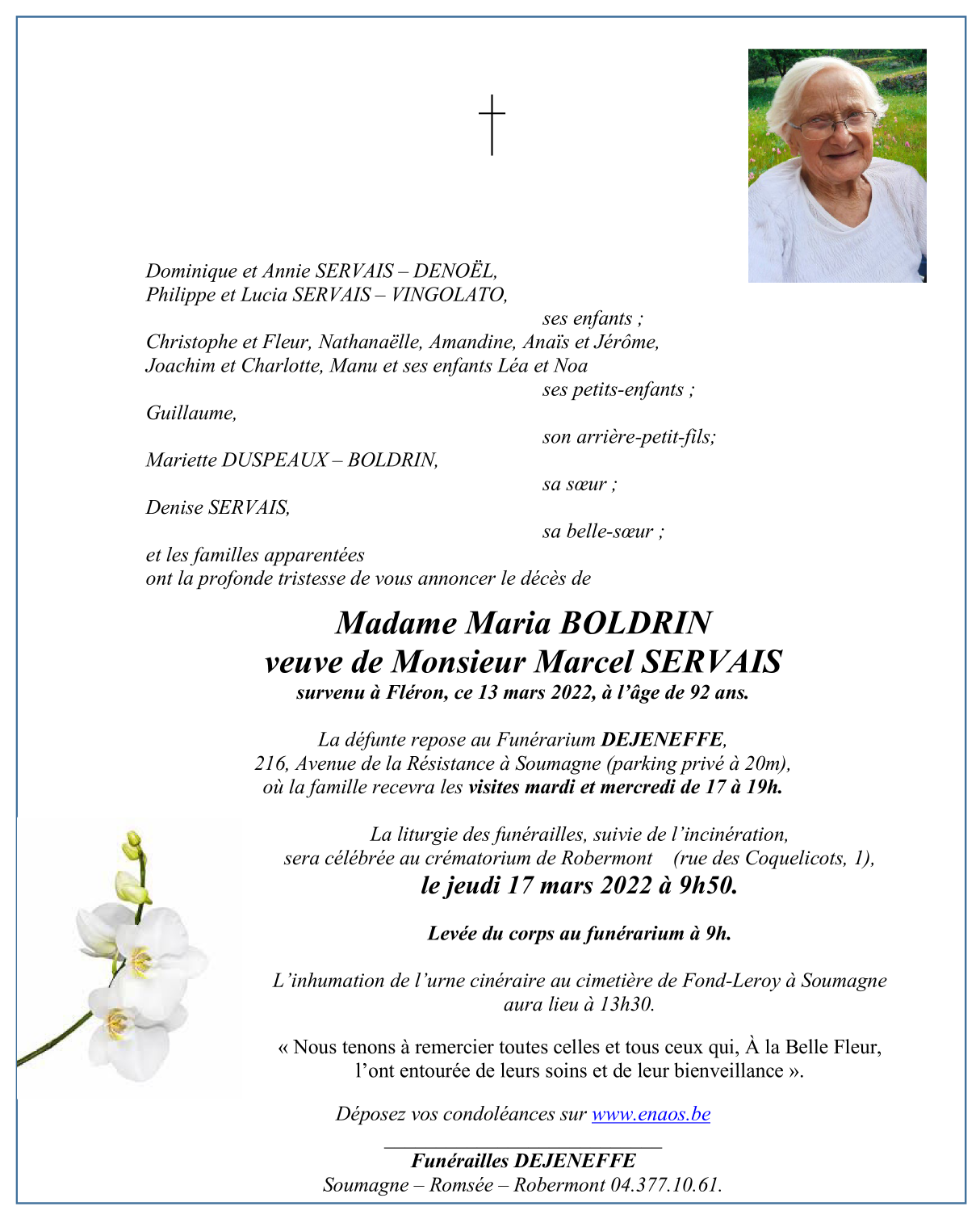 Veuve de Monsieur Marcel SERVAIS