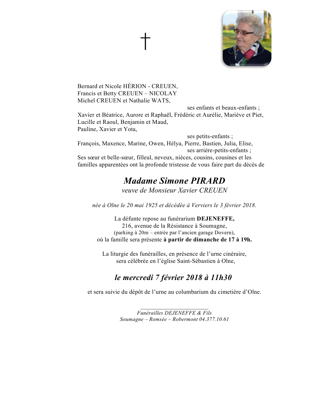 Madame Simone CREUEN née PIRARD