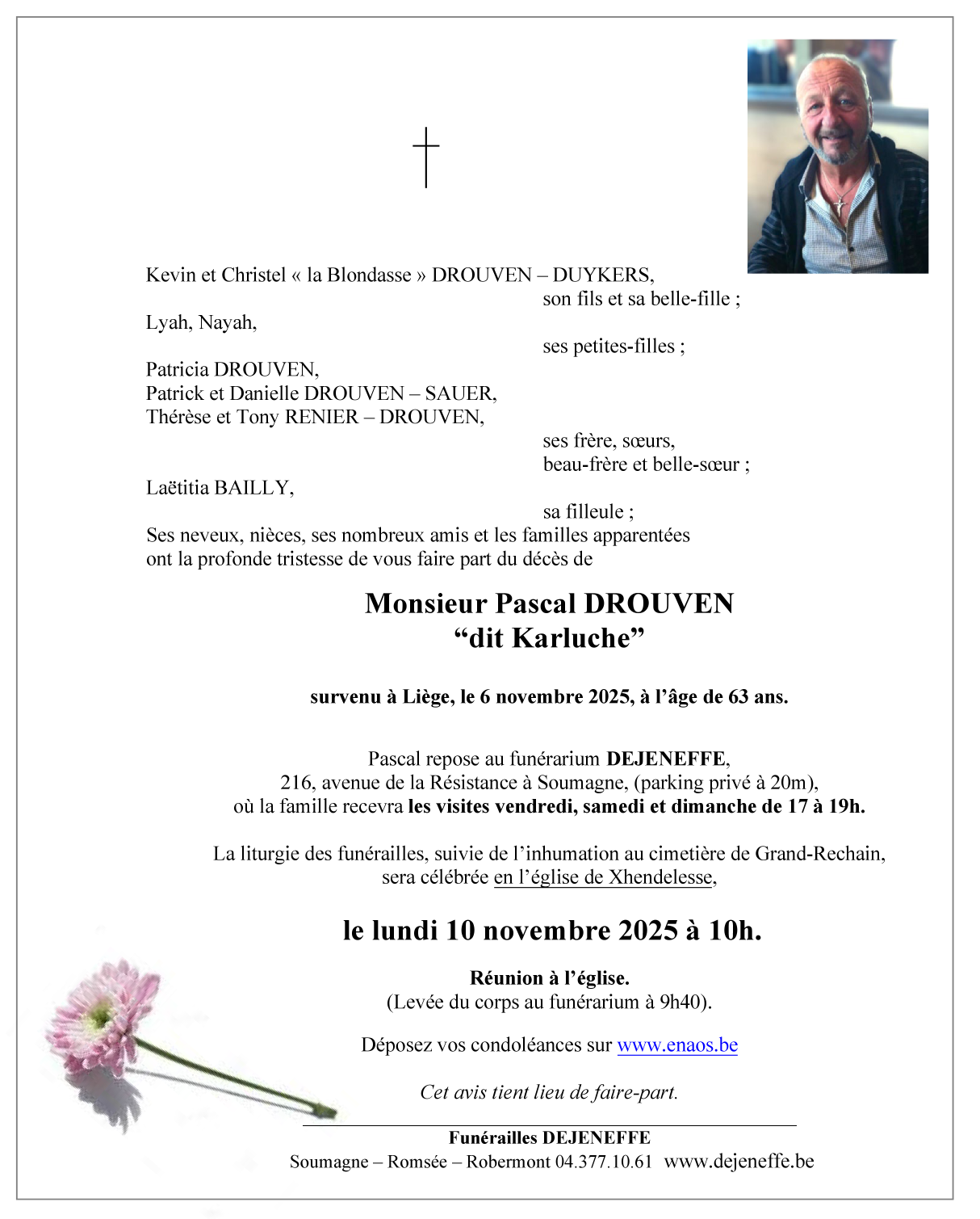 Décédé à Liège (4000) le jeudi 6 novembre 2025 à l'âge de 63 ans