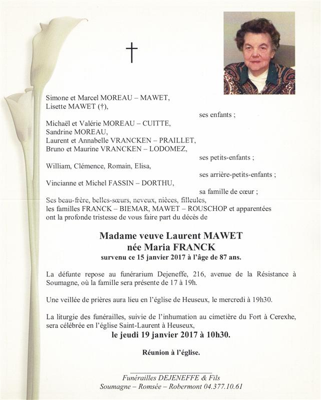 Madame Maria MAWET - FRANCK