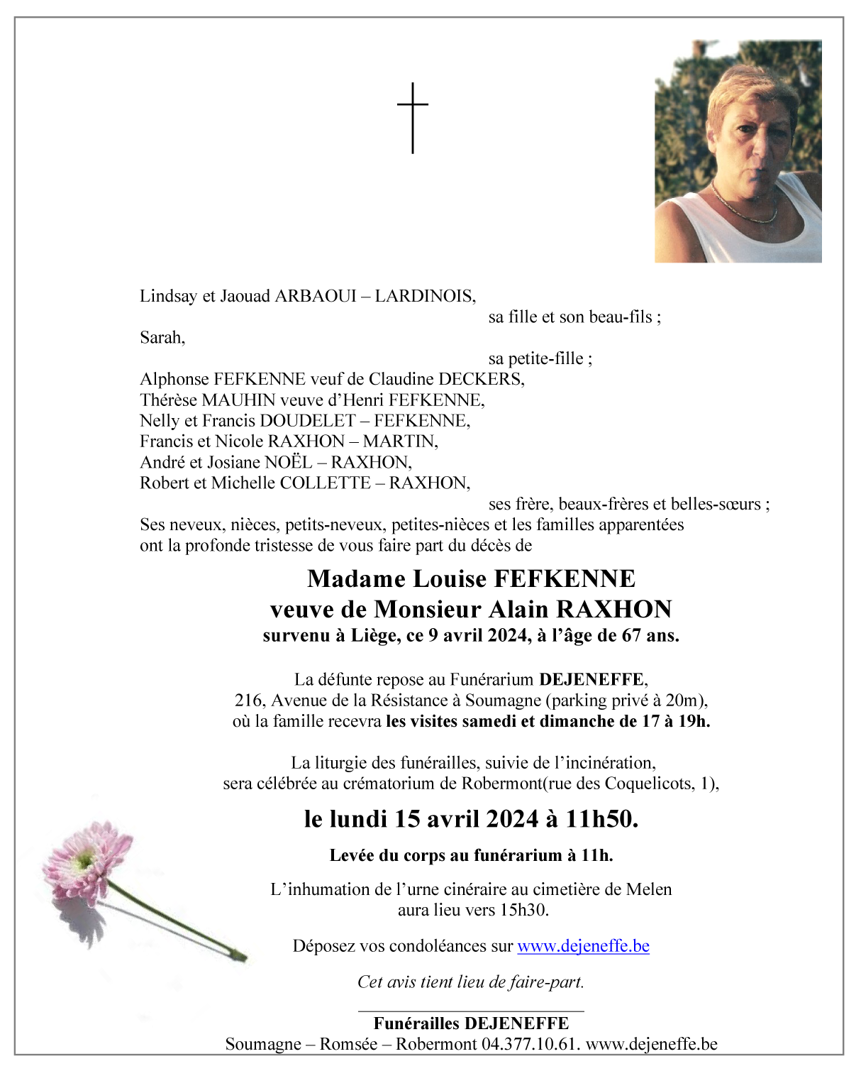 Décédée à Liège (4000) le mardi 9 avril 2024 à l'âge de 67 ans